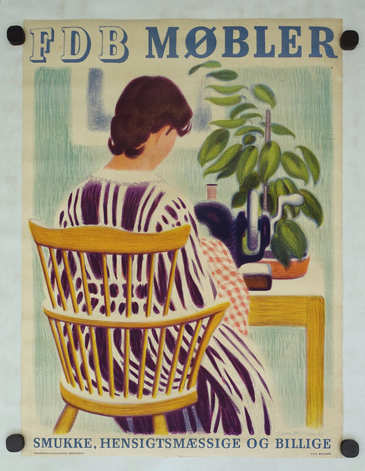 1949 Danish Design Chair for FDB - Original Vintage Poster