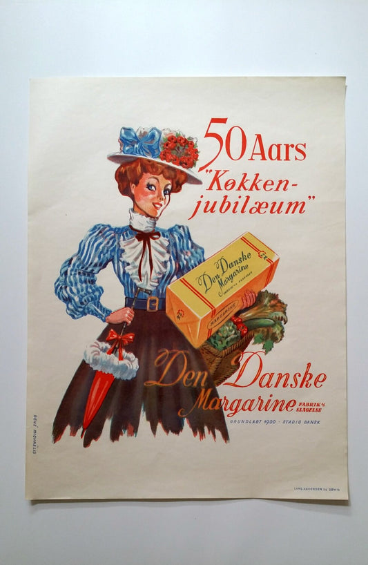 1950 Danish Butter Margarine Advertisement - Den Danske Margarine - Original Vintage Poster