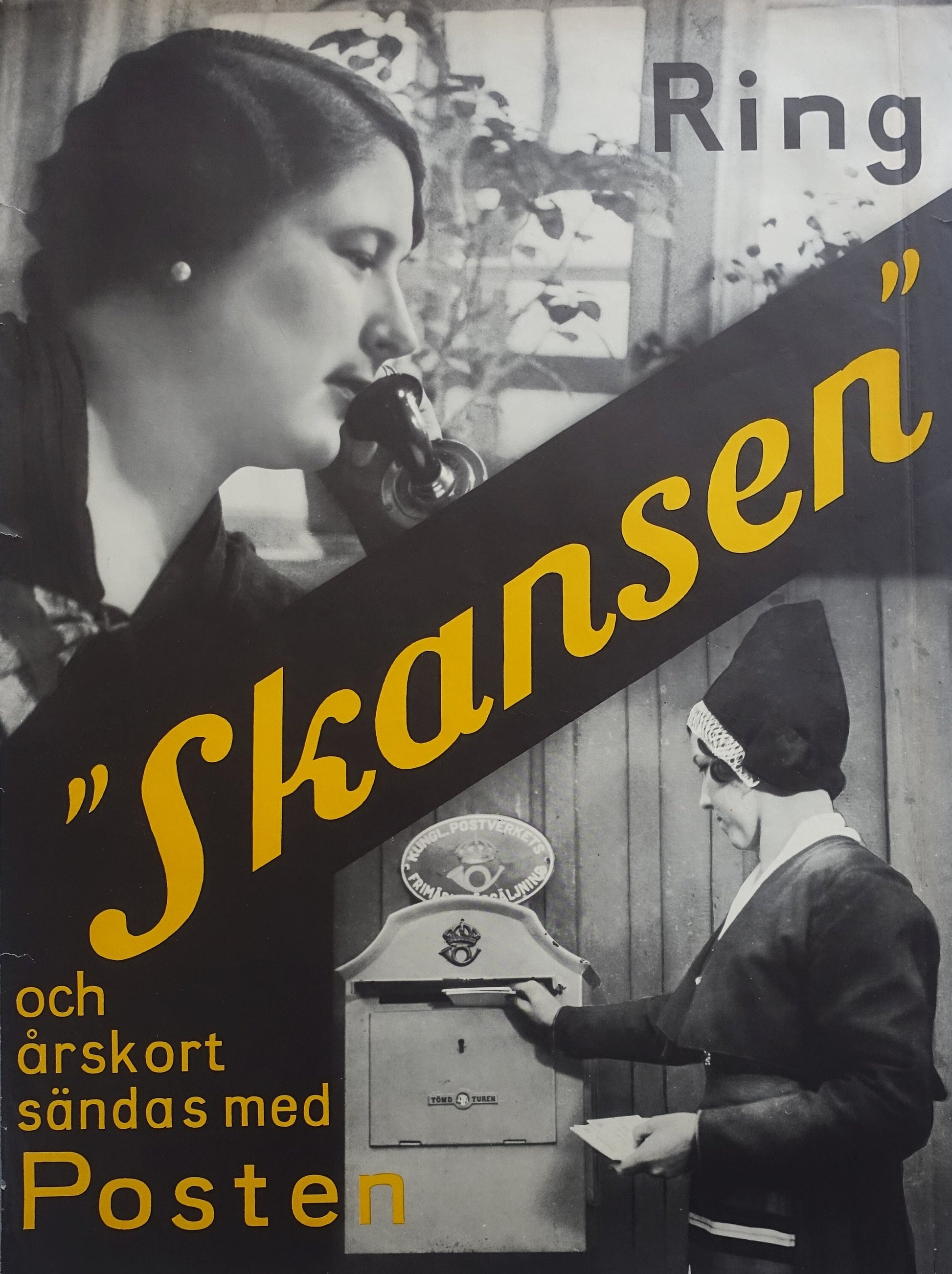 The poster displays present high-tech customer support - one can call Skansen and have your annual pass delivered by mail. Notice the outfit the mailwoman is wear. Absolutely historical!