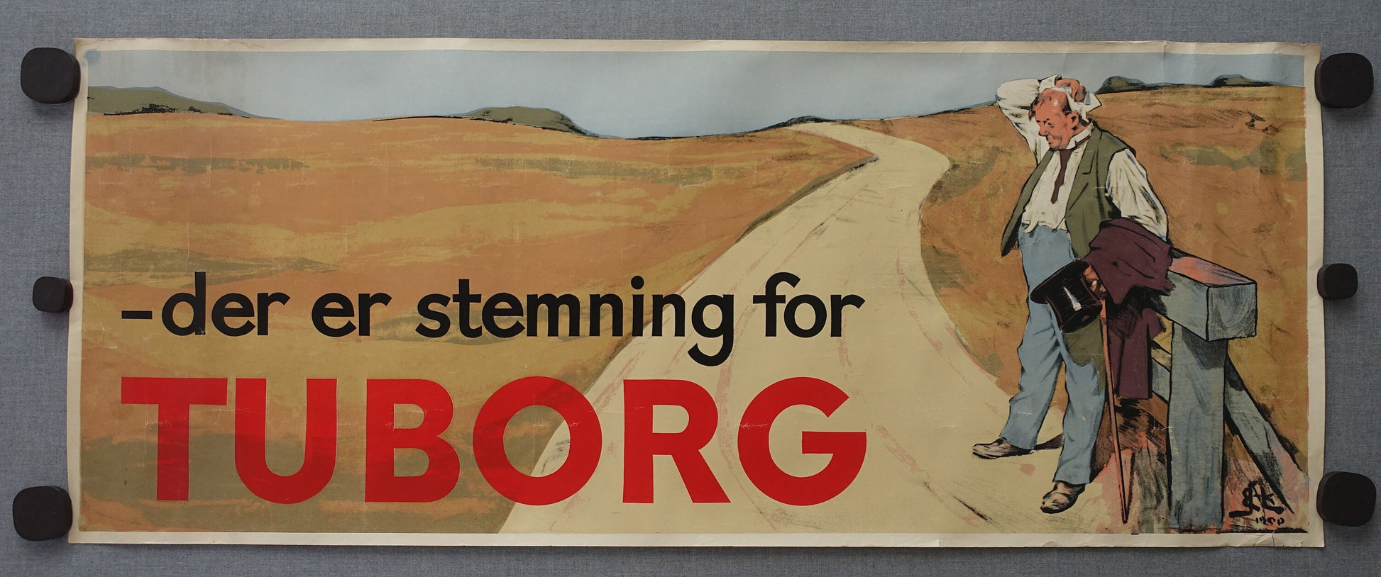 "The Tuborg Man poster" ("Den tørstige mand") was created by the Danish artist Erik Henningsen. In 1900, Henningsen entered his image in a contest. His illustration did not win but won the second price. However, someone at the Tuborg Brewery later that year, saw the illustration and soon after Henningsen’s once forgotten contest entry went on to become one of the most popular Danish advertising images well over 100 years.