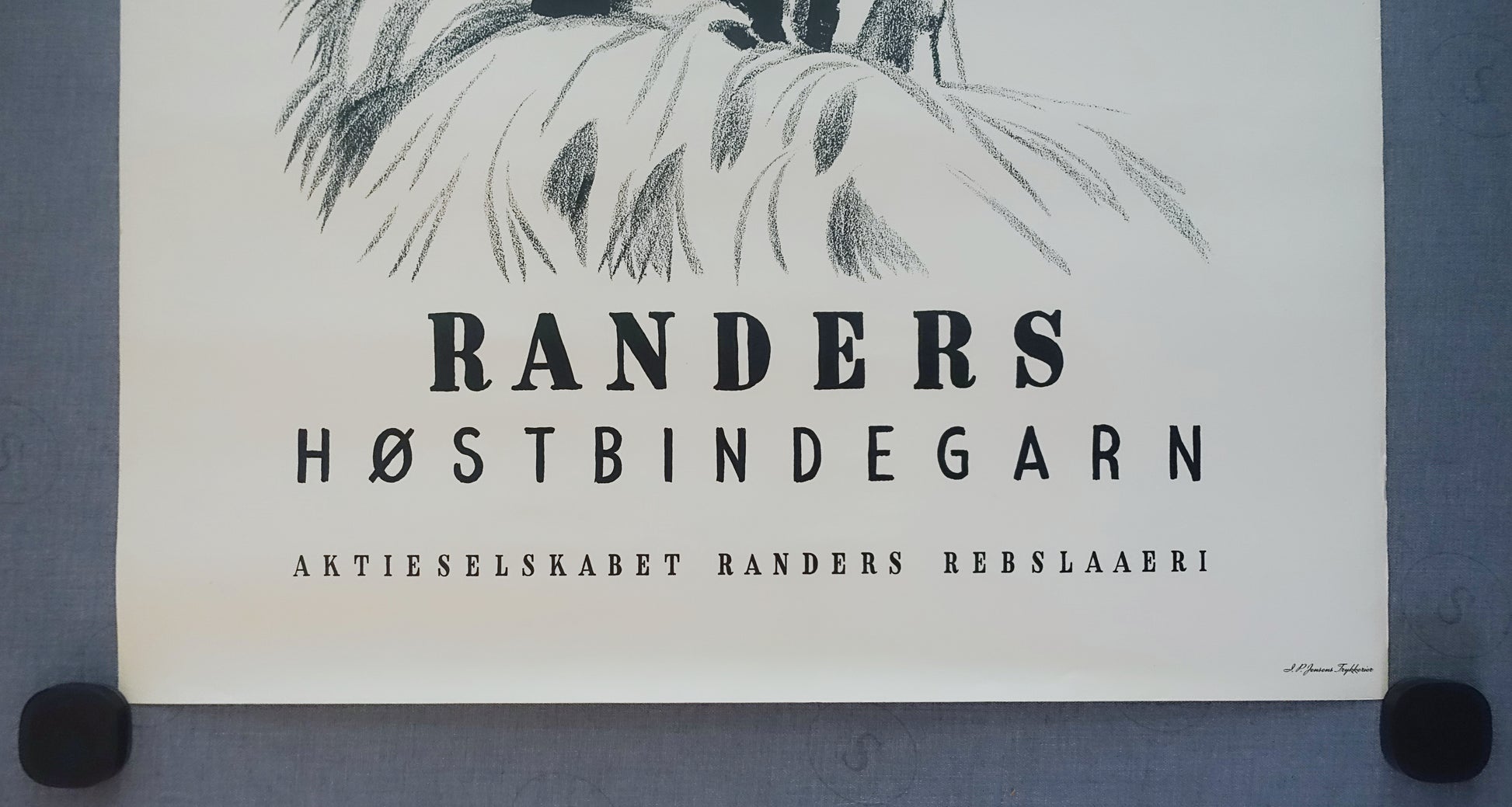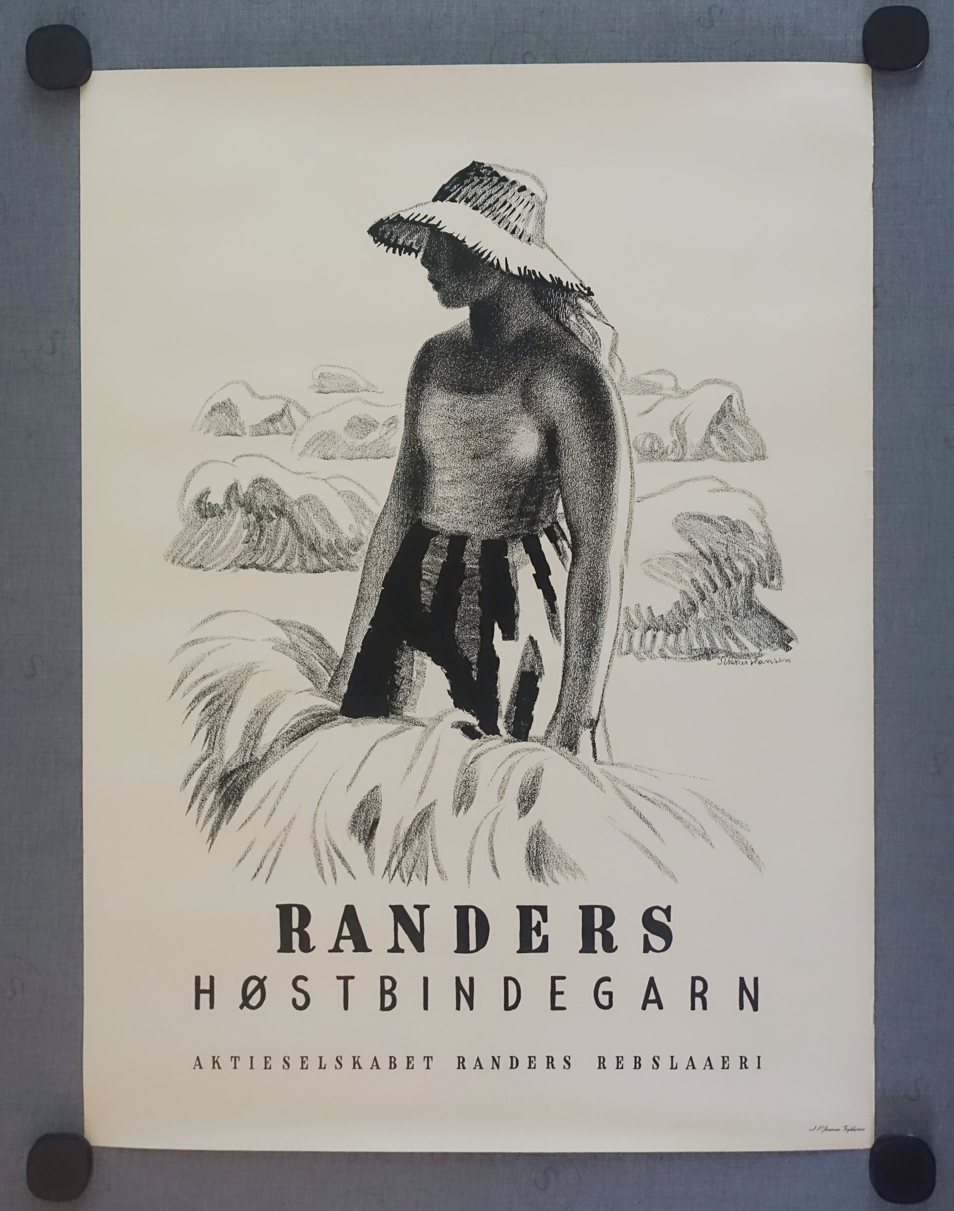 This very fine poster displays a young country girl working in the fields who seems to make or tie straw bales. The poster was made for the manufacturer Randers Rope which created all kinds of strings, ropes, wires and yarn.