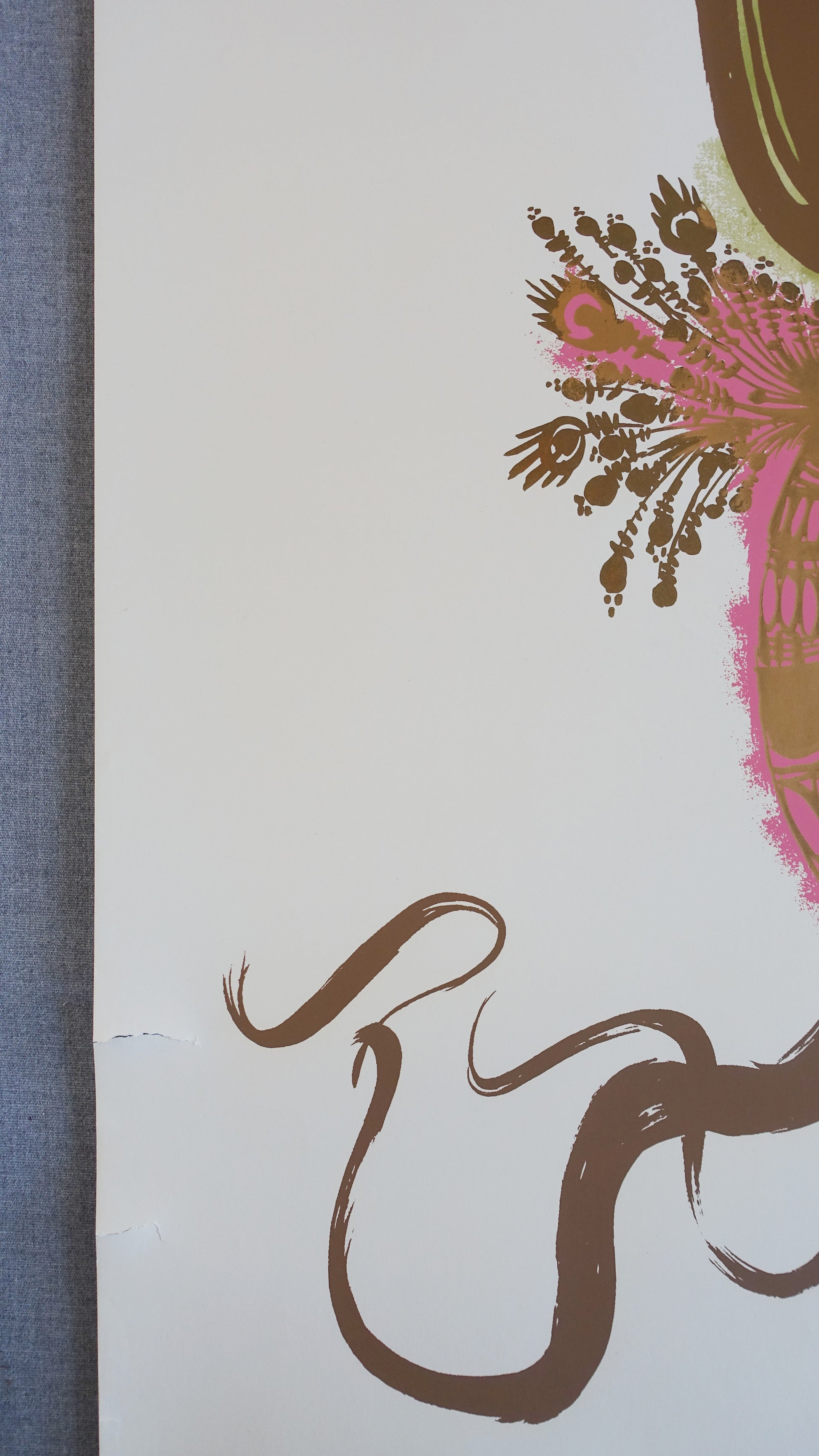 This rare beauty of a poster is one of Wiinblad's first artworks. The craft of Wiinblad is often colorful, lush and full of humor. He was inspired by the sumptuous oriental style far from the Nordic stylish line. This artwork is differently true to his special line.