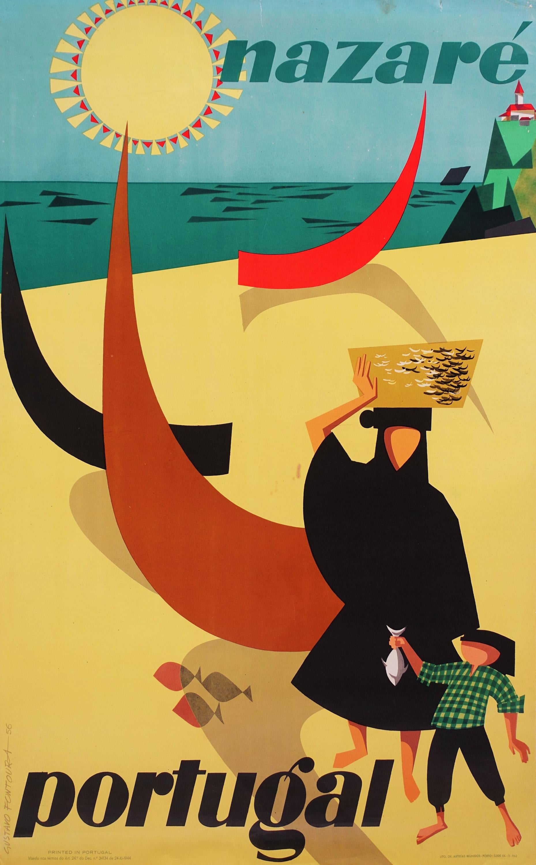 1956 Portugal Nazaré Travel Poster - Original Vintage Poster