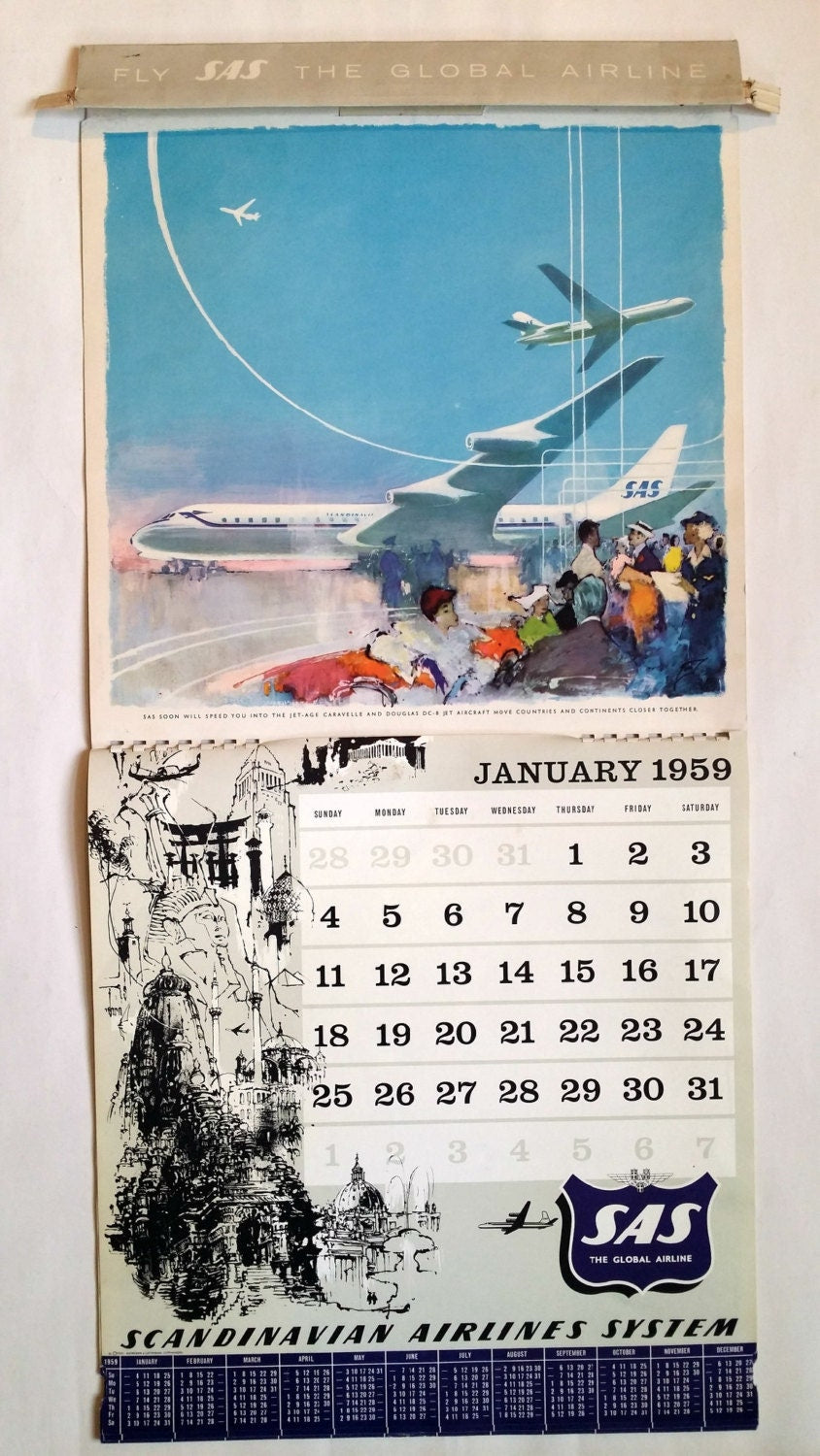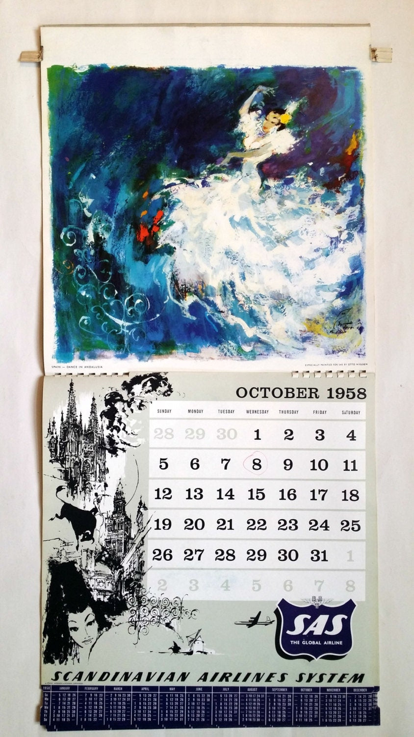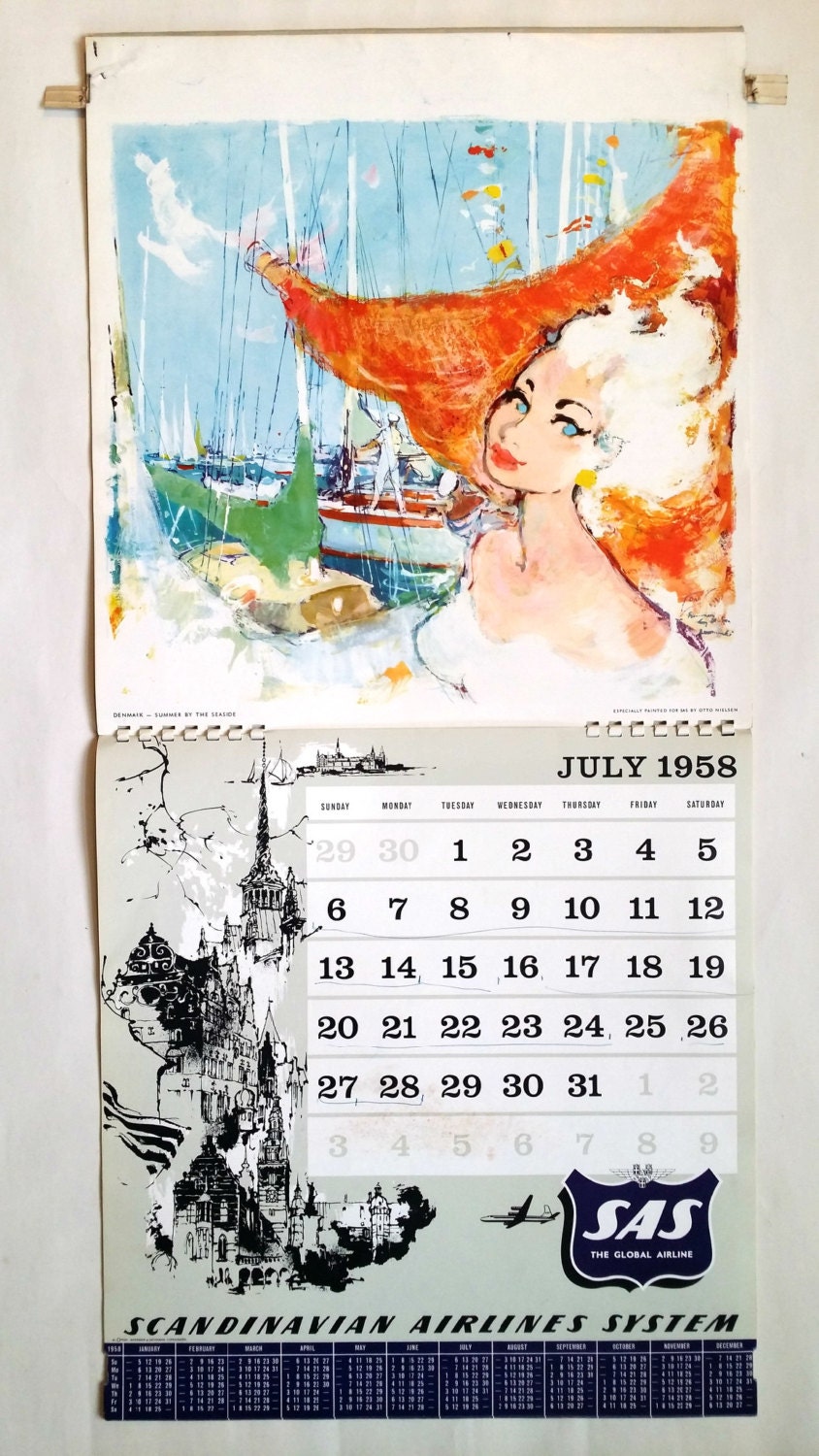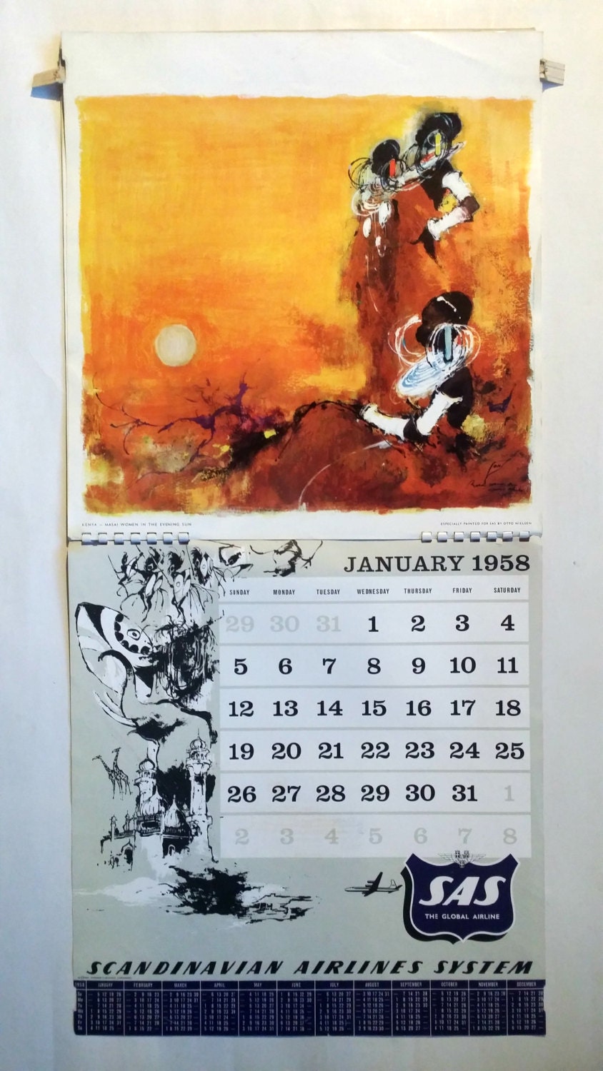 1958 Otto Nielsen SAS Airlines Calendar - Original Vintage Calendar
