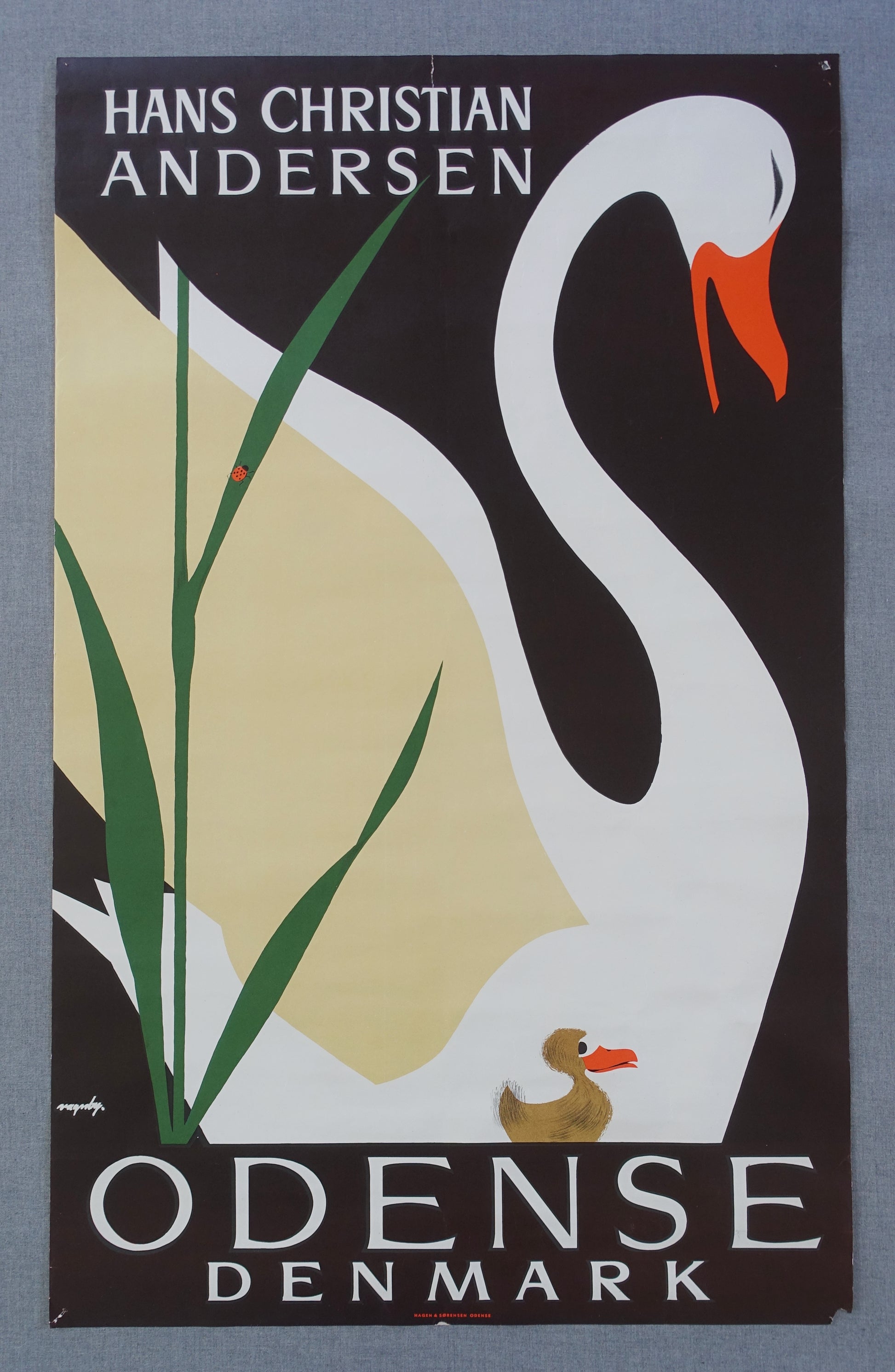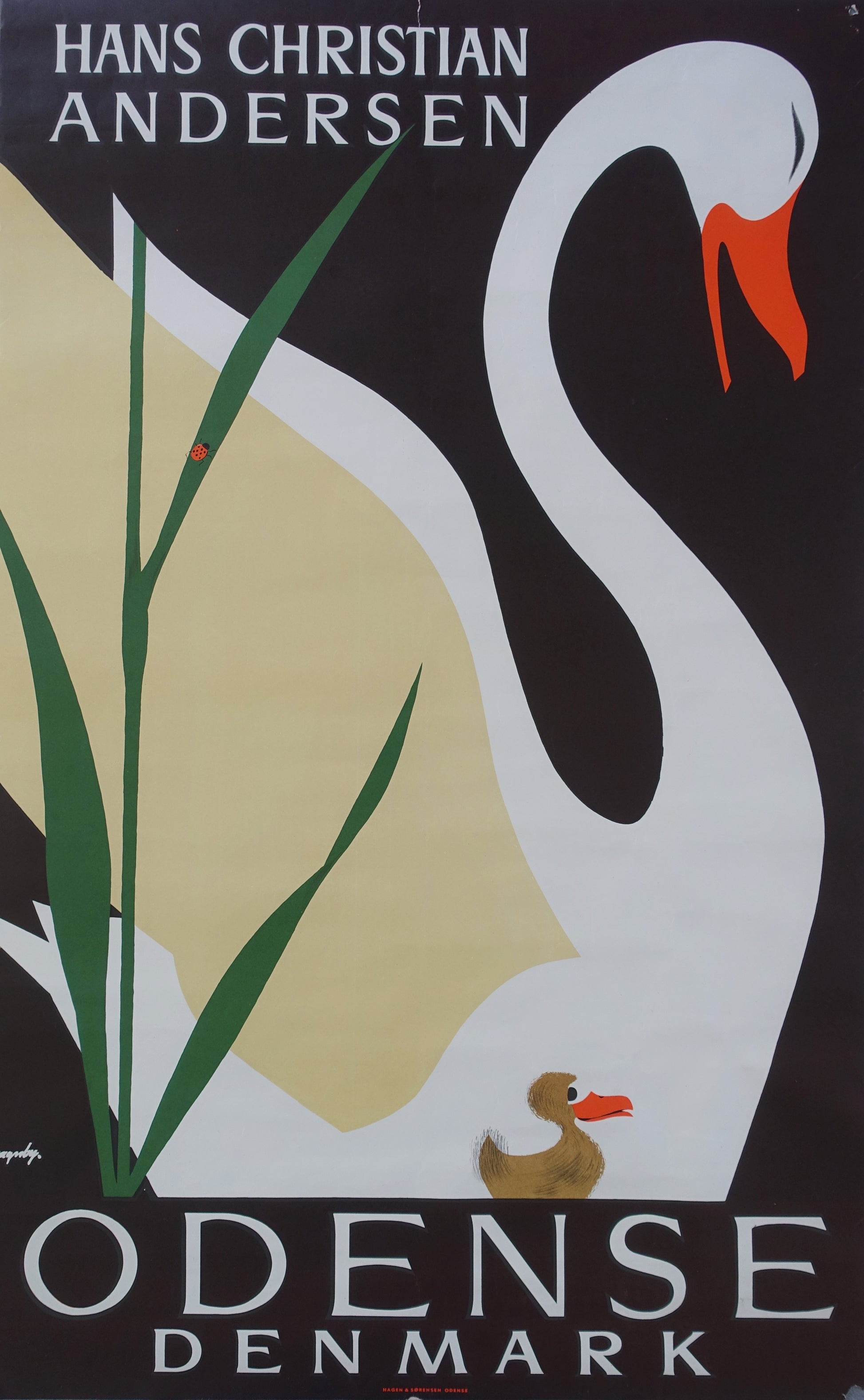 I guess many of us are familiar with the story "The Ugly Duckling" written by the great fairy tale writer Hans Christian Andersen. This mid-century travel poster is encouraging people to visit his birthplace - the city of Odense in Denmark.