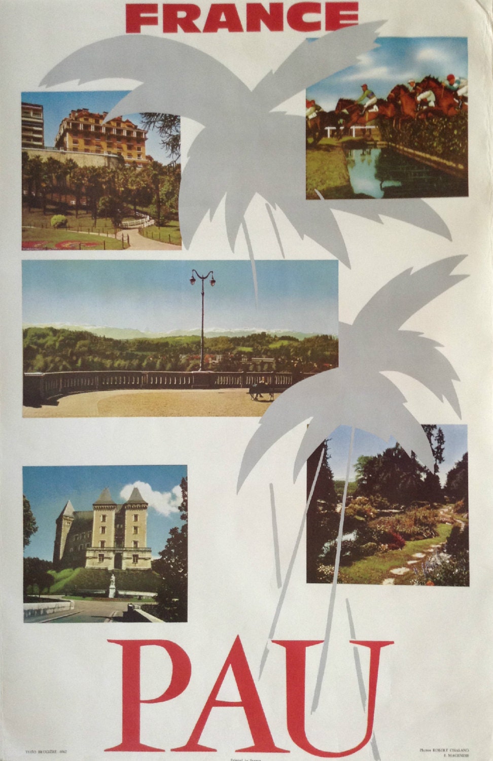 A beautiful poster advertising the beautiful city of Pau in the French Pyrénées-Atlantiques - located in the southwest corner of France near the Spanish border.