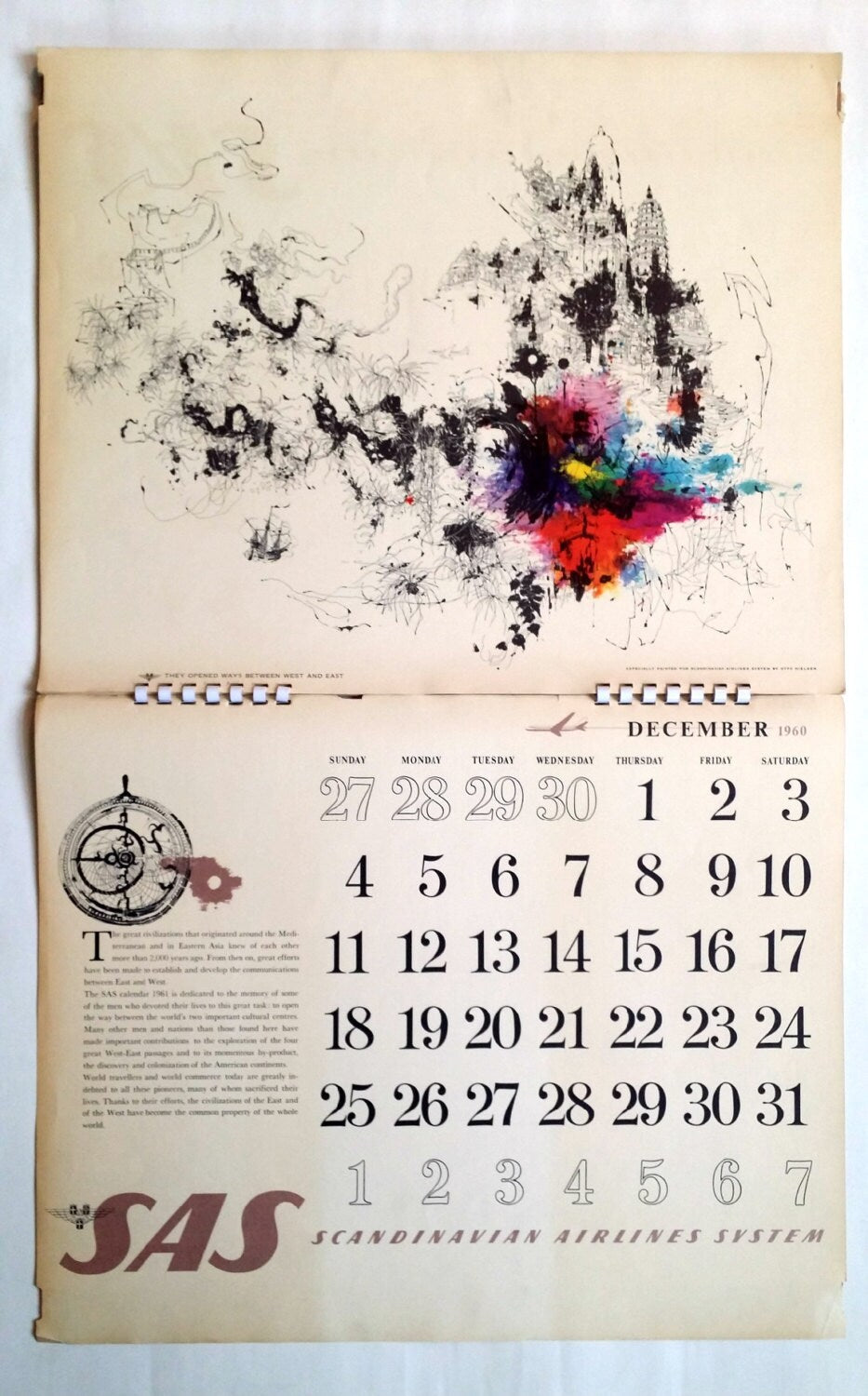 1961 SAS Airlines Calendar by Otto Nielsen - Original Vintage Calendar