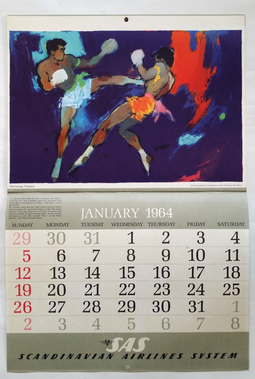 1964 SAS Airlines Calendar by Otto Nielsen - Original Vintage Calendar