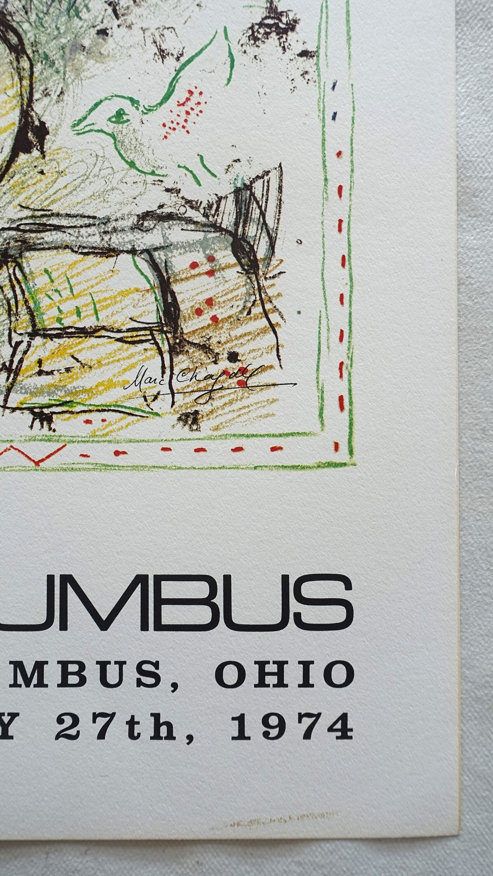 1974 Chagall at Pace Colombus Exhibition Poster - Original Vintage Poster