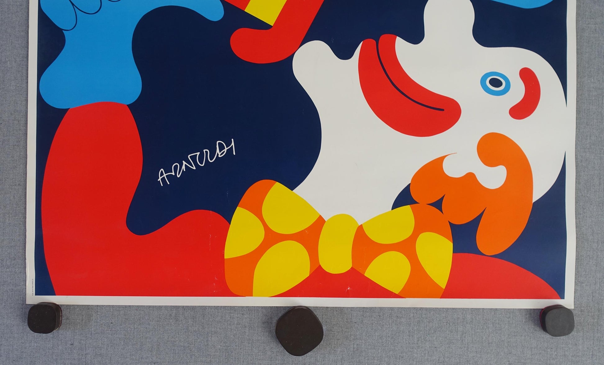 The Danish artist, Per Arnoldi, made this advertising poster for the Danish Circus Arena (Cirkus Arena). Arnoldi also made a colorful facade to the main circus tent for the tour in 1974 - this was actually the second time he helped decoration the circus - he also painted one of the stands when he was just 14 years old.