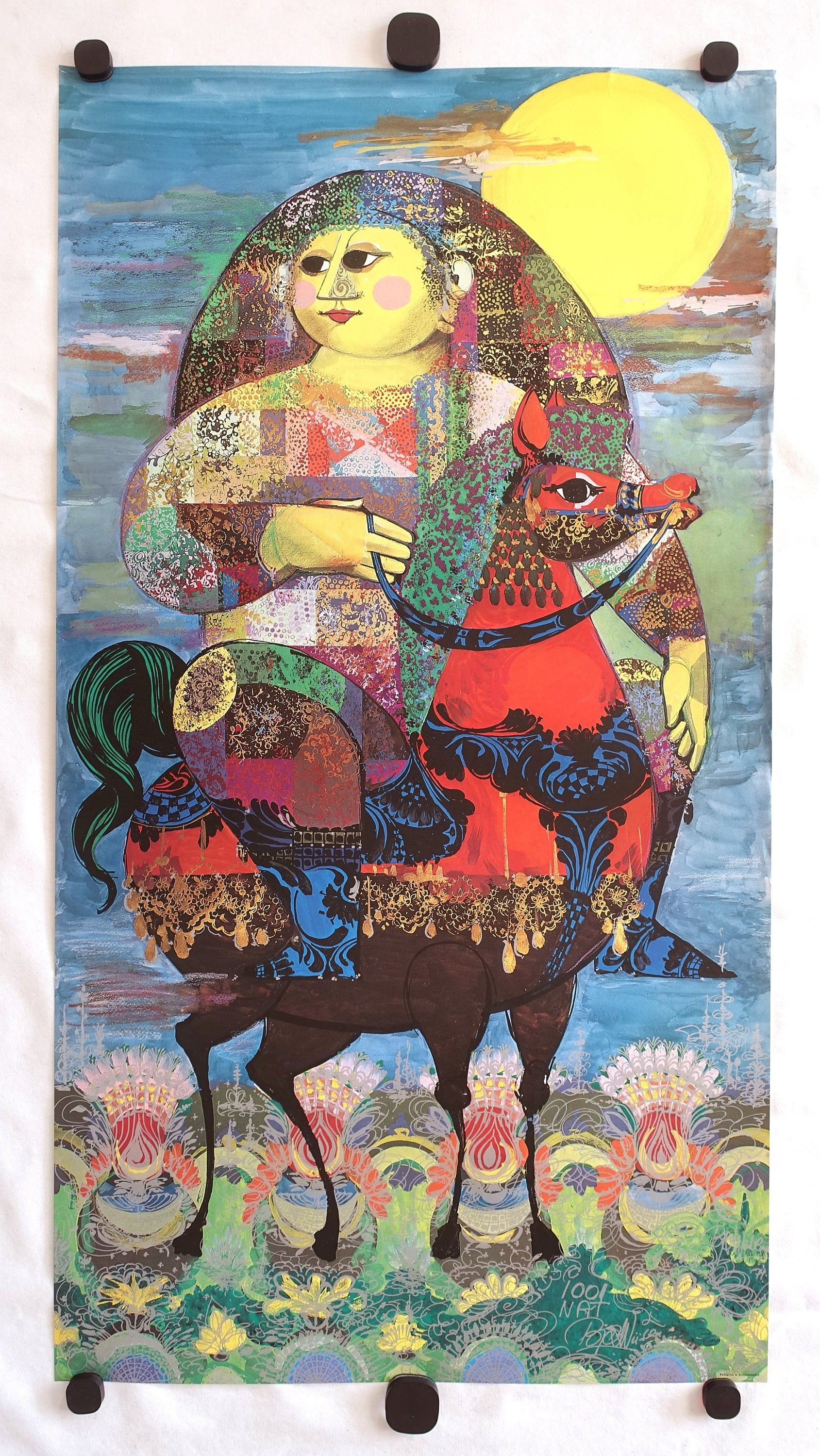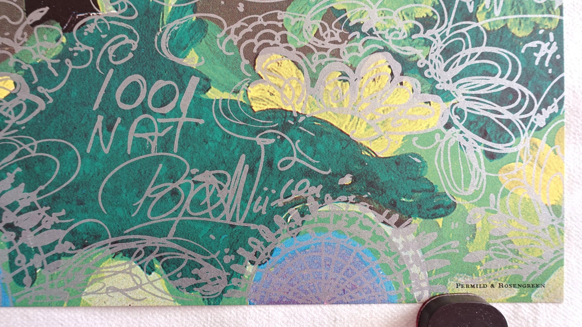 The poster was made as artwork and advertisement for the complete book publishing of One Thousand and One Nights. Bjørn Wiinblad also made graphical illustrations in the books in order to bring the adventures to life.