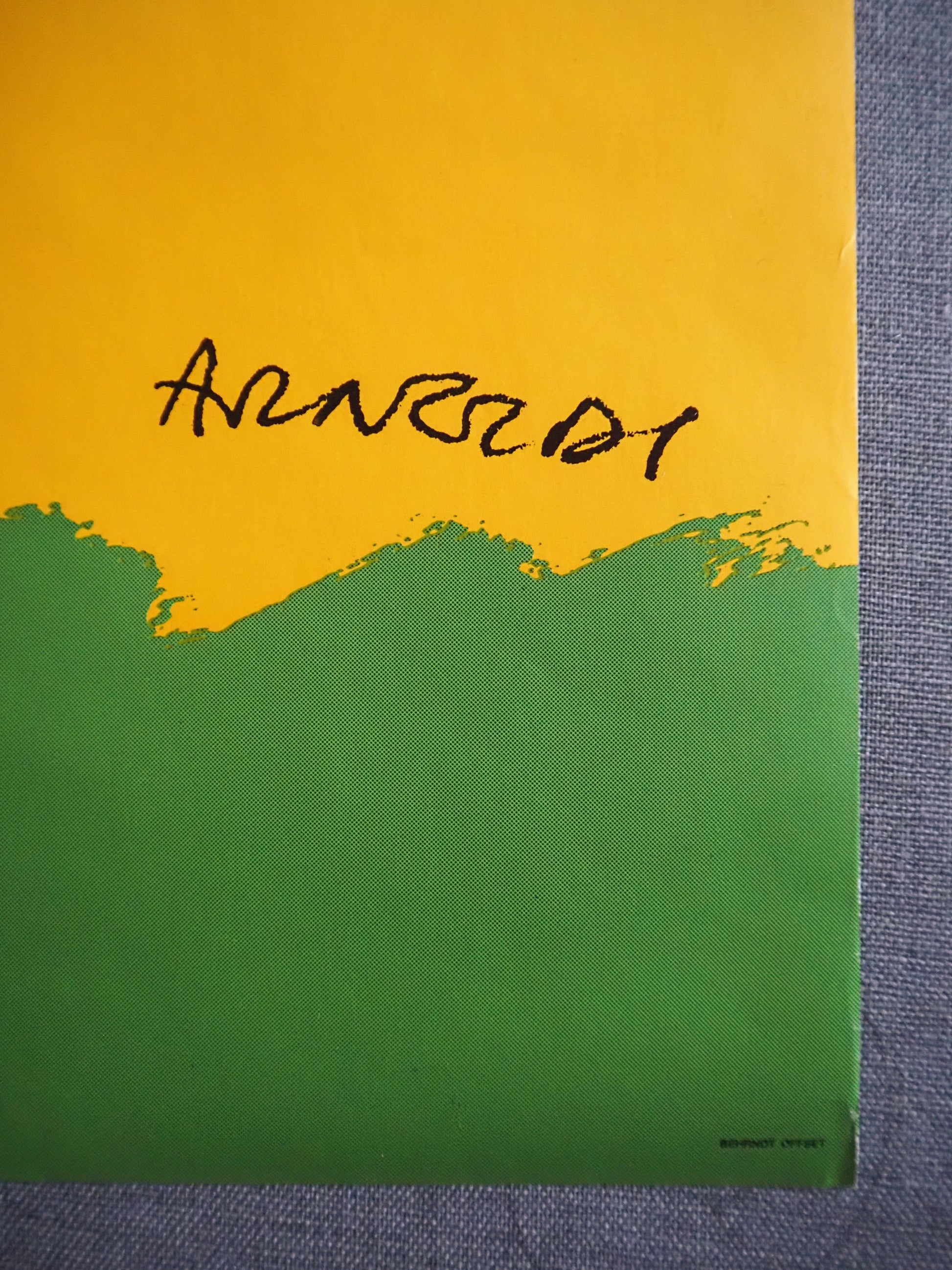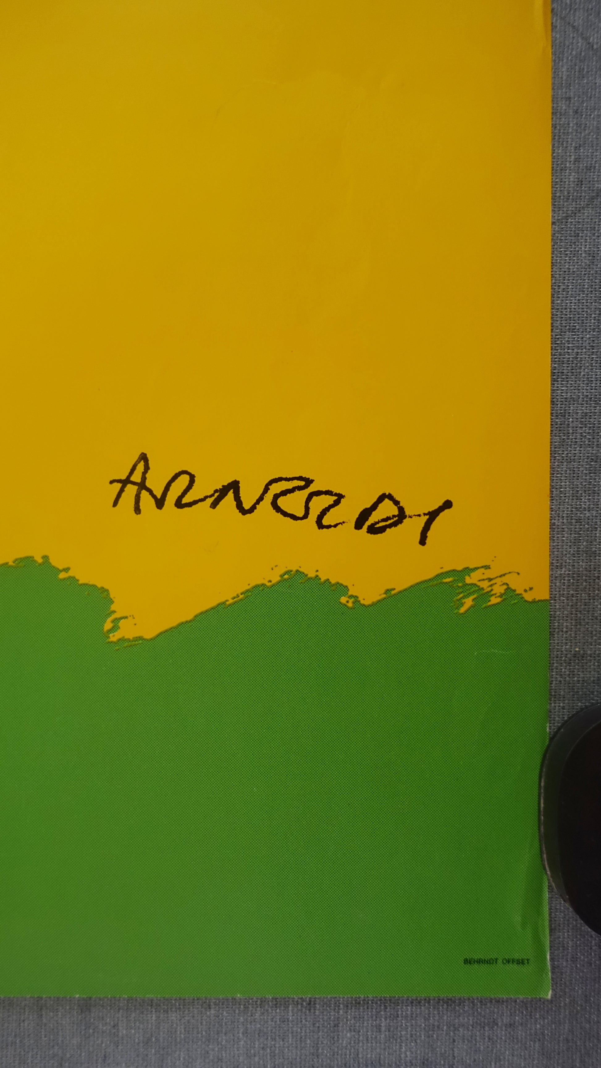 Arnoldi (1941) is a self-taught, world-renowned modernist artist. He is particularly known for his posters and considered one of Denmark's most important poster artists. He is known for a tight and easily recognizable form and color language. As a painter, Per Arnoldi always uses primary colors (red/yellow/blue) on a bed of black - just like on this very poster.