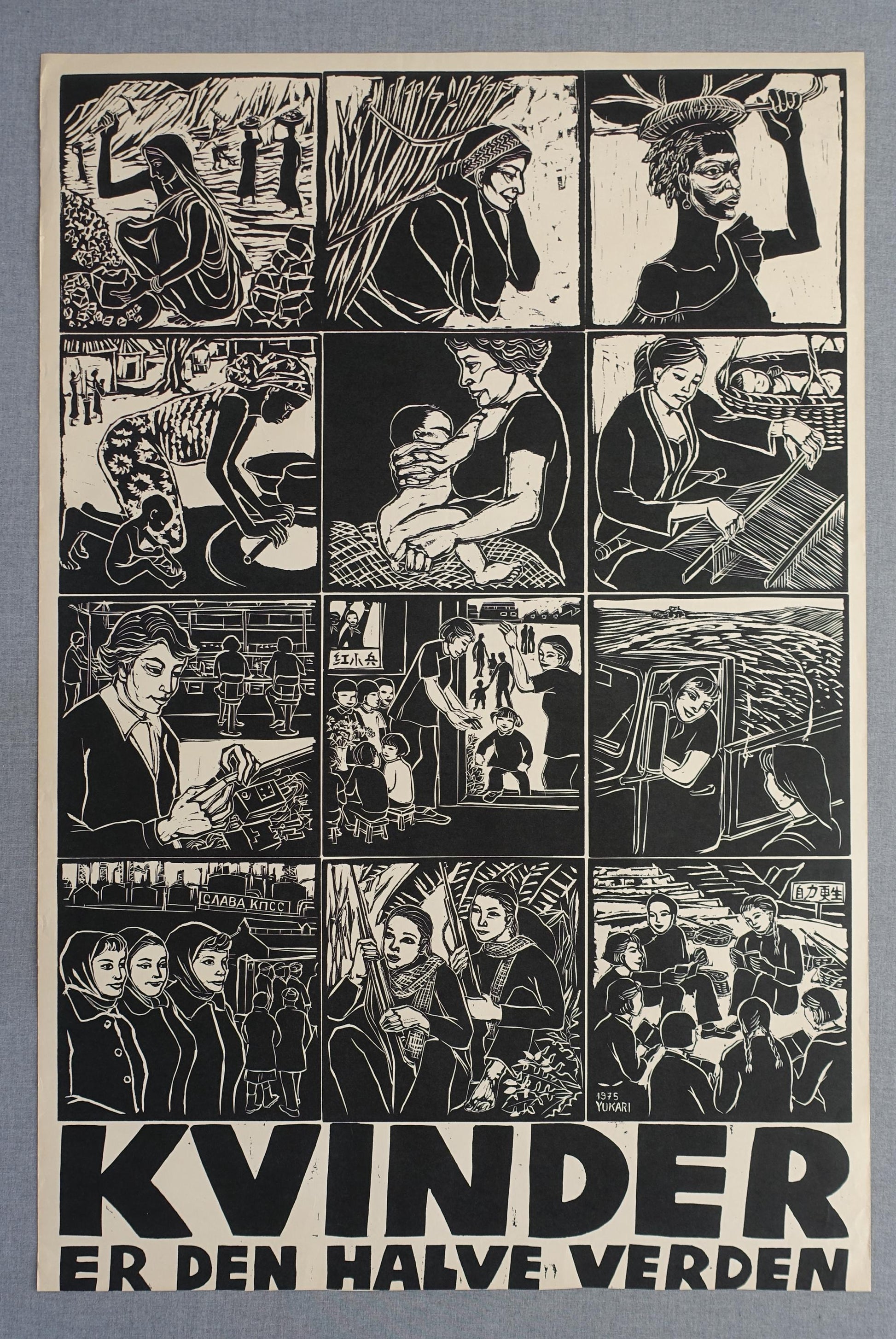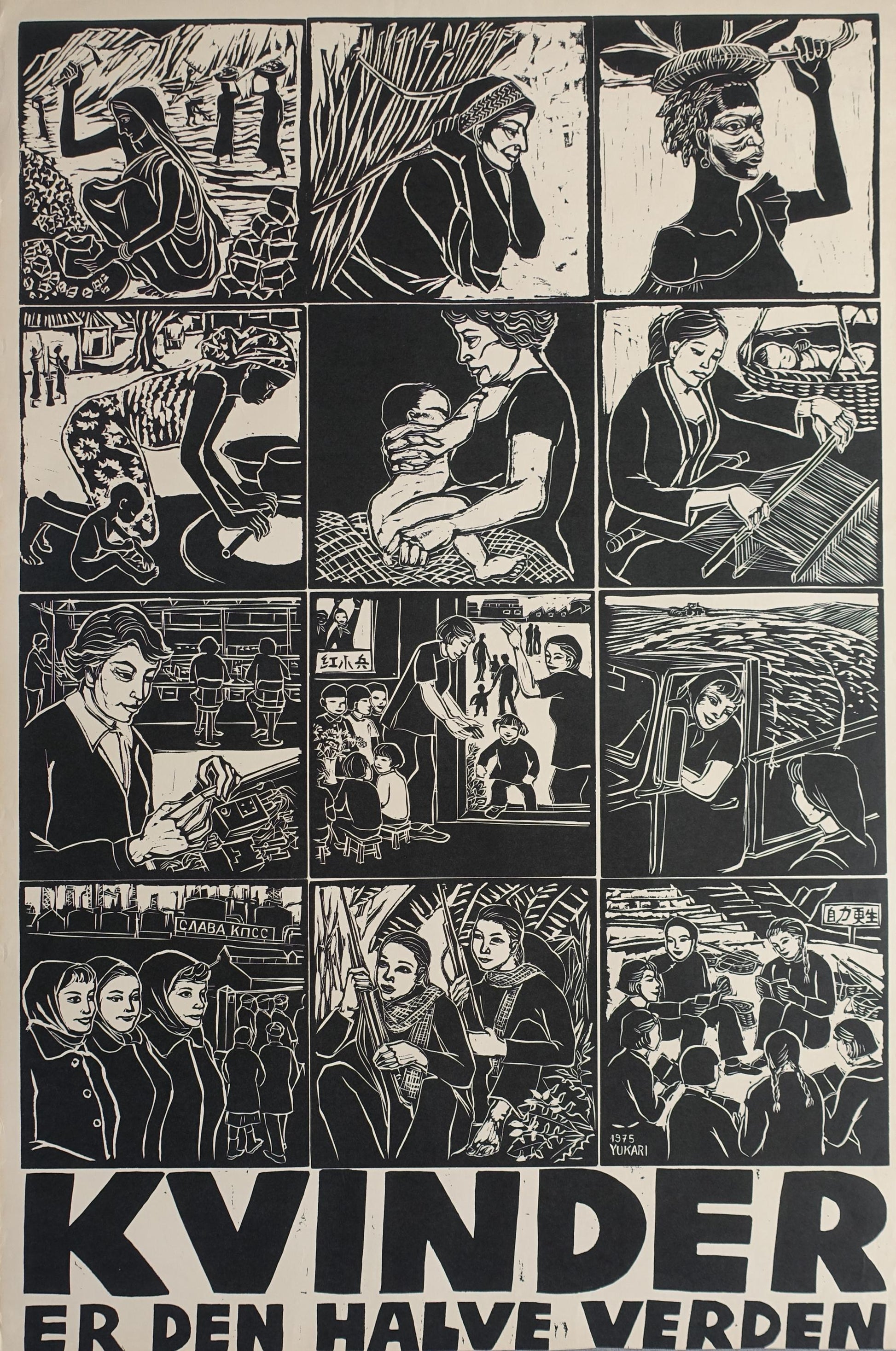 ..so states this interesting woman emancipation poster. The poster elegantly displays many of the important roles in society females all over the world carried out in the mid 1970s.
