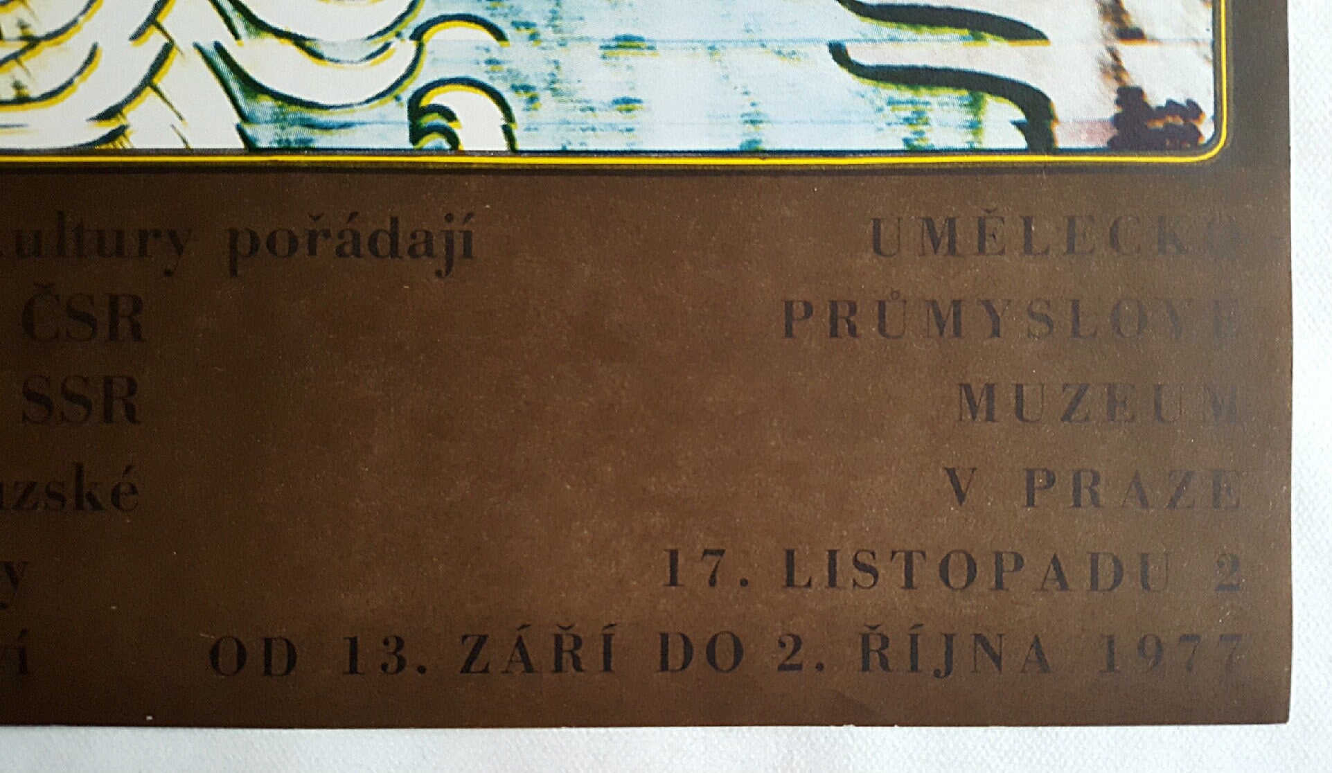 The exhibition is called "Belgian Art Nouveau Posters" and was on display in the Czech capital of Prague in 1977.