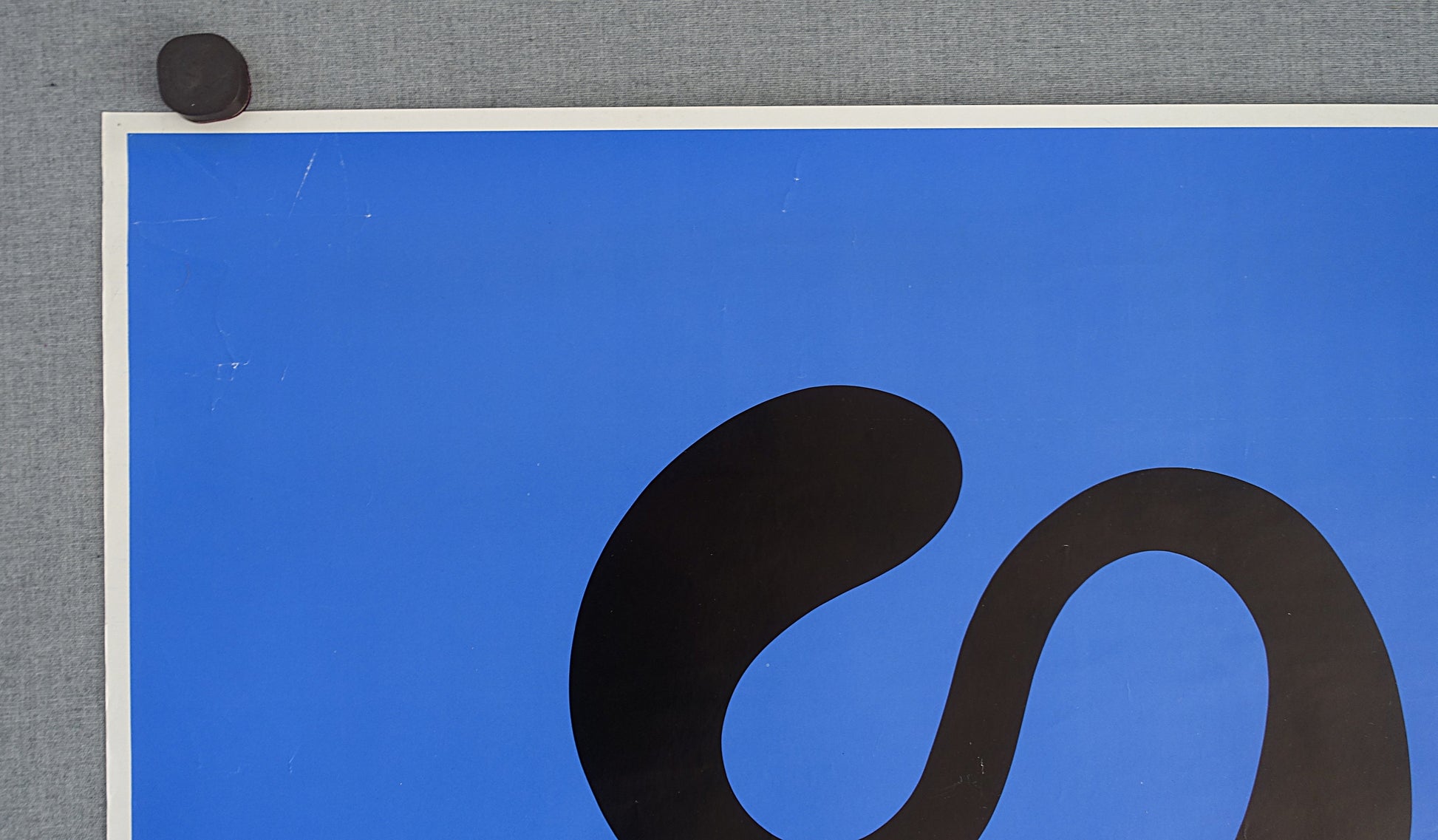 Arnoldi (1941) is a self-taught, world-renowned modernist artist. He is particularly known for his posters and considered one of Denmark's most important poster artists. He is known for a tight and easily recognizable form and color language. As a painter, Per Arnoldi always uses primary colors (red/yellow/blue) on a bed of black - just like on this very poster.
