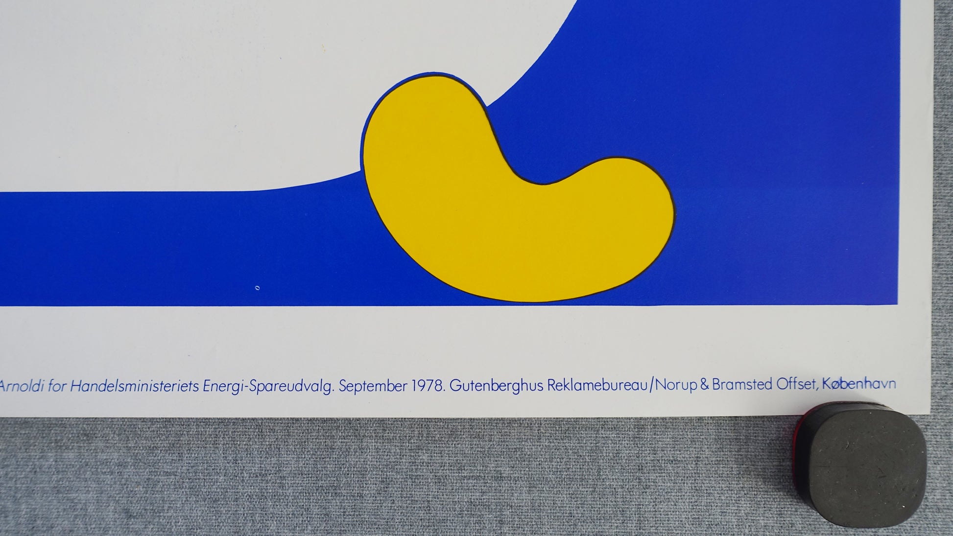 The man was Per Arnoldi and he was hired to make campaign posters to encourage the Danes to save energy. This poster is a part of a collection of four different poster that was commissioned by Trade Ministry's Energy Saving Committee of Denmark (Handelsministeriets Energi-Spareudvalg).