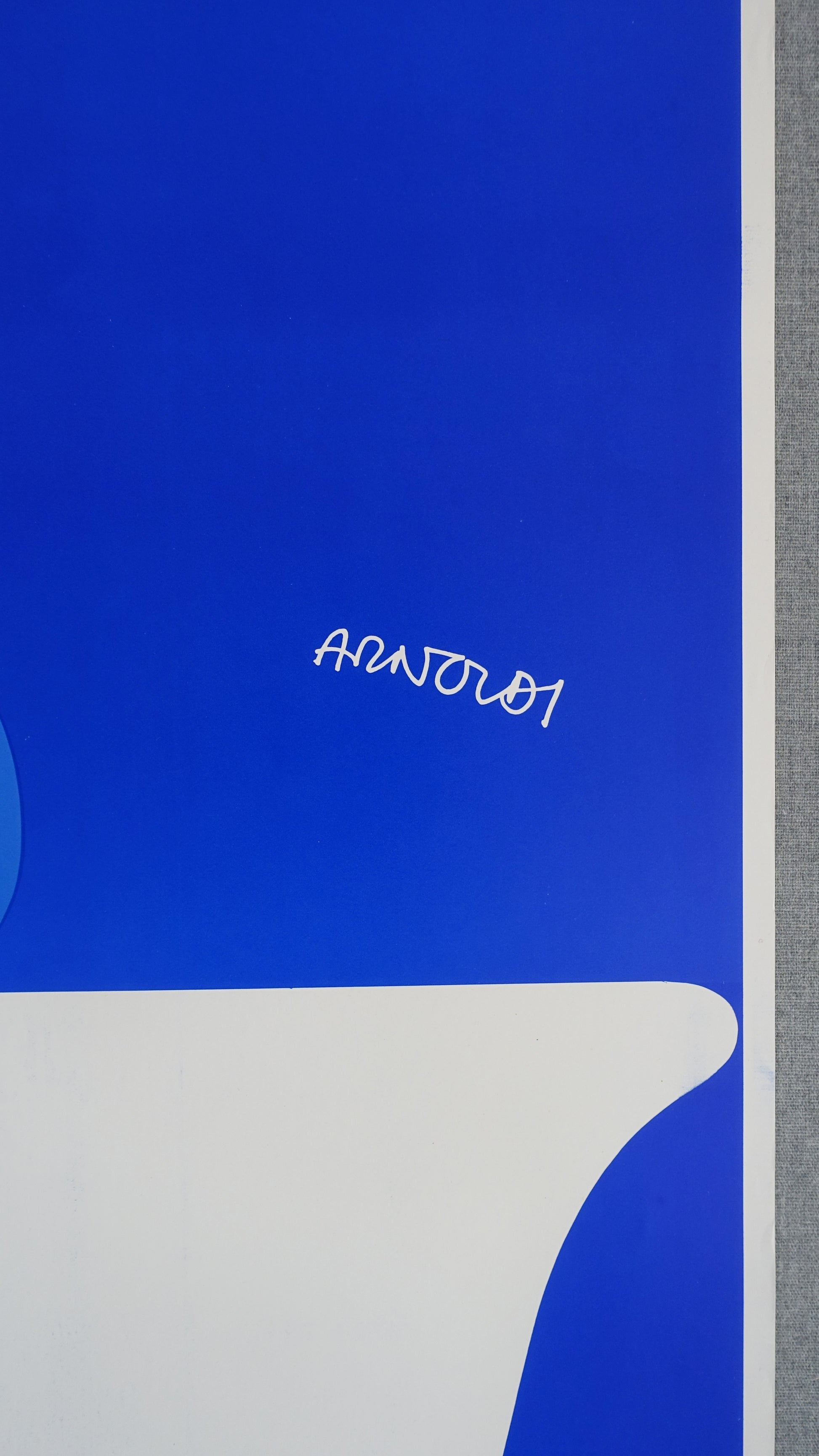 Arnoldi (1941) is a self-taught, world-renowned modernist artist. He is particularly known for his posters and considered one of Denmark's most important poster artists. He is known for a tight and easily recognizable form and color language. As a painter, Per Arnoldi always uses primary colors (red/yellow/blue) on a bed of black - just like on this very poster.