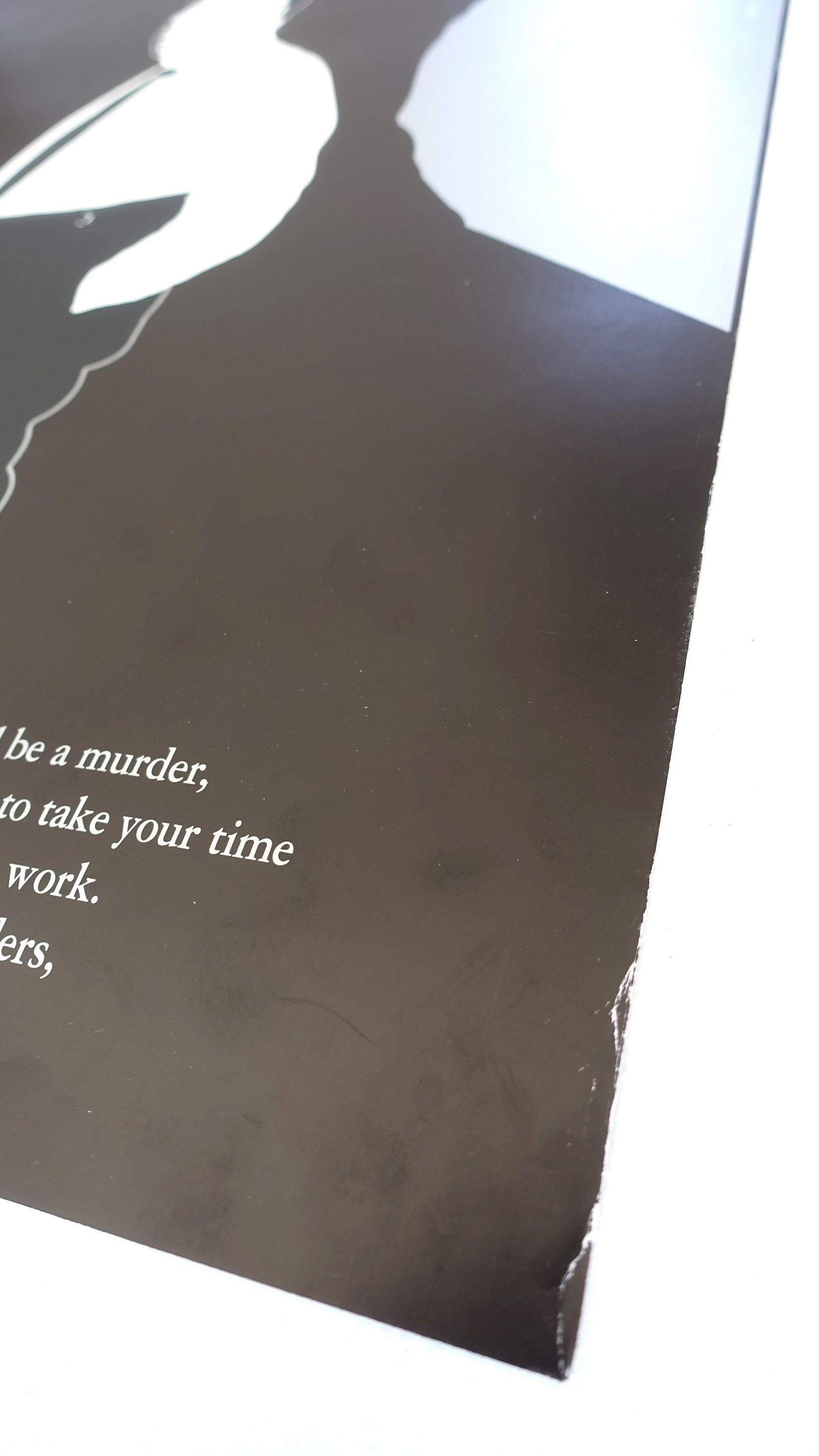 Hitchcock was indeed a quite special man and he left many famous quotes. Many of the quotes related to murder like the quote on the poster: "I've heard, every moment there will be a murder, so, Ladies and Gentlemen, I don't want to take your time any longer. I know you want to go to work. But remember that nice people don't commit murders, that would be bad manners."