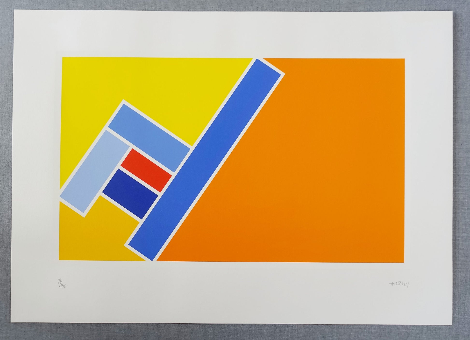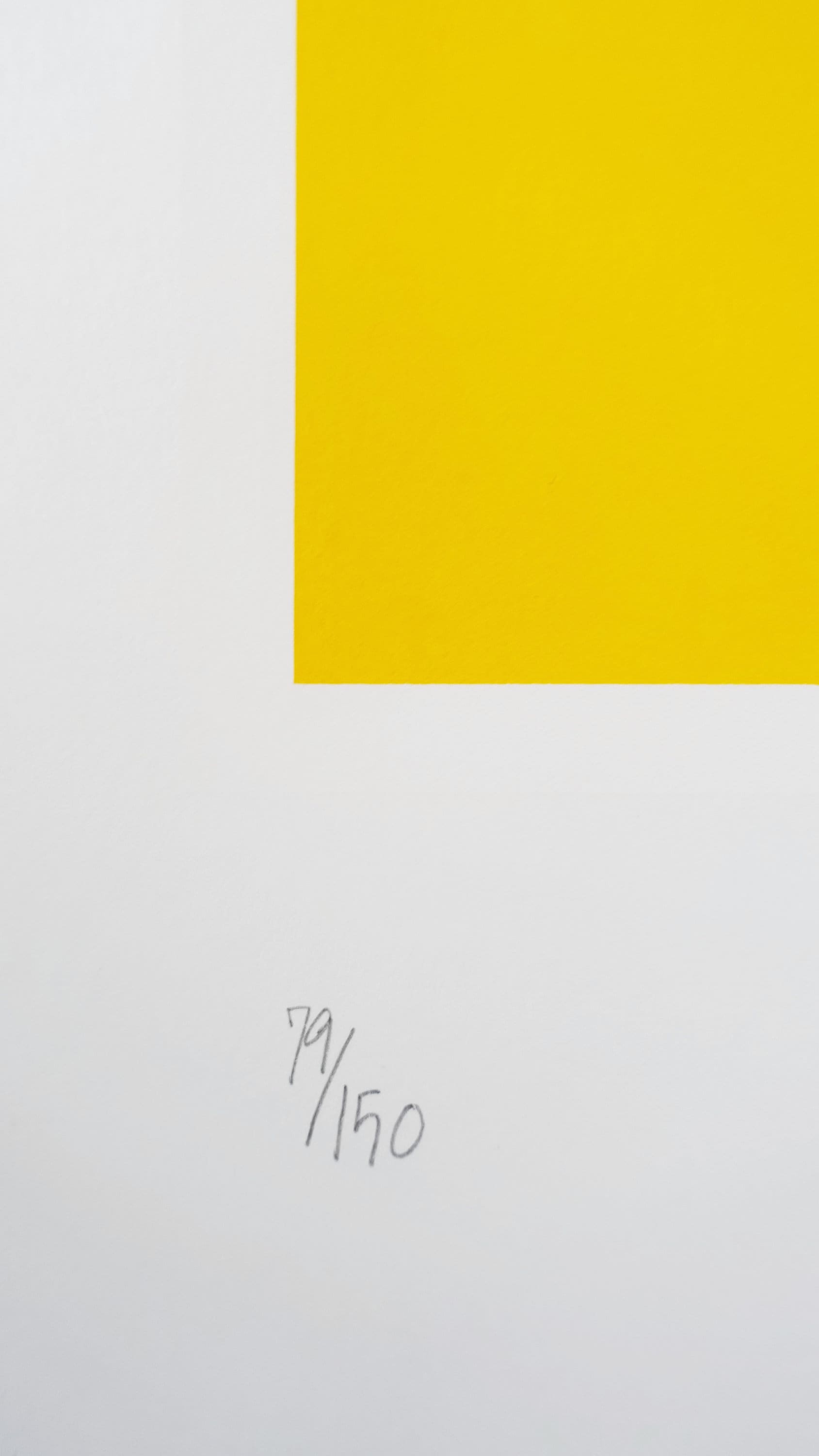 Arnoldi is a self-taught, world-renowned modernist artist. He is particularly known for his posters and considered one of Denmark's most important poster artists. He is known for a tight and easily recognizable form and color language. As a painter, Per Arnoldi always uses primary colors (red/yellow/blue) on a bed of black - just like on this very poster.