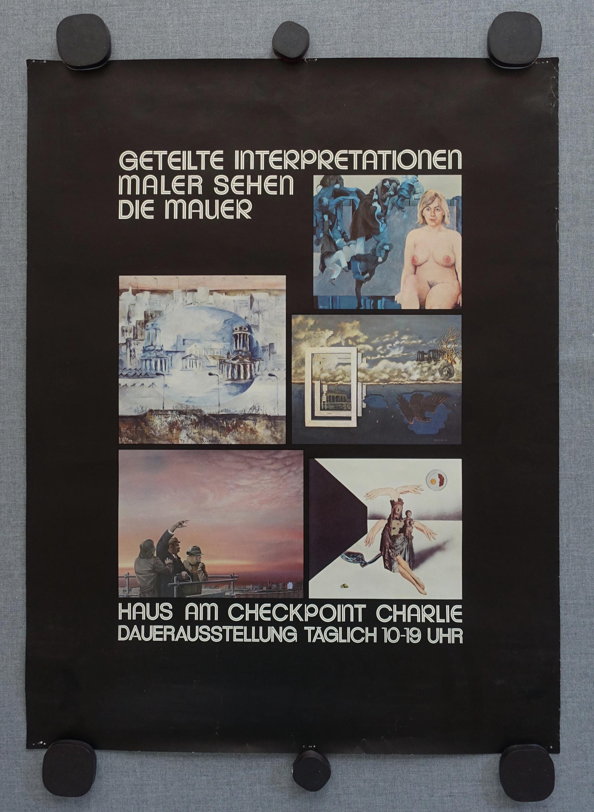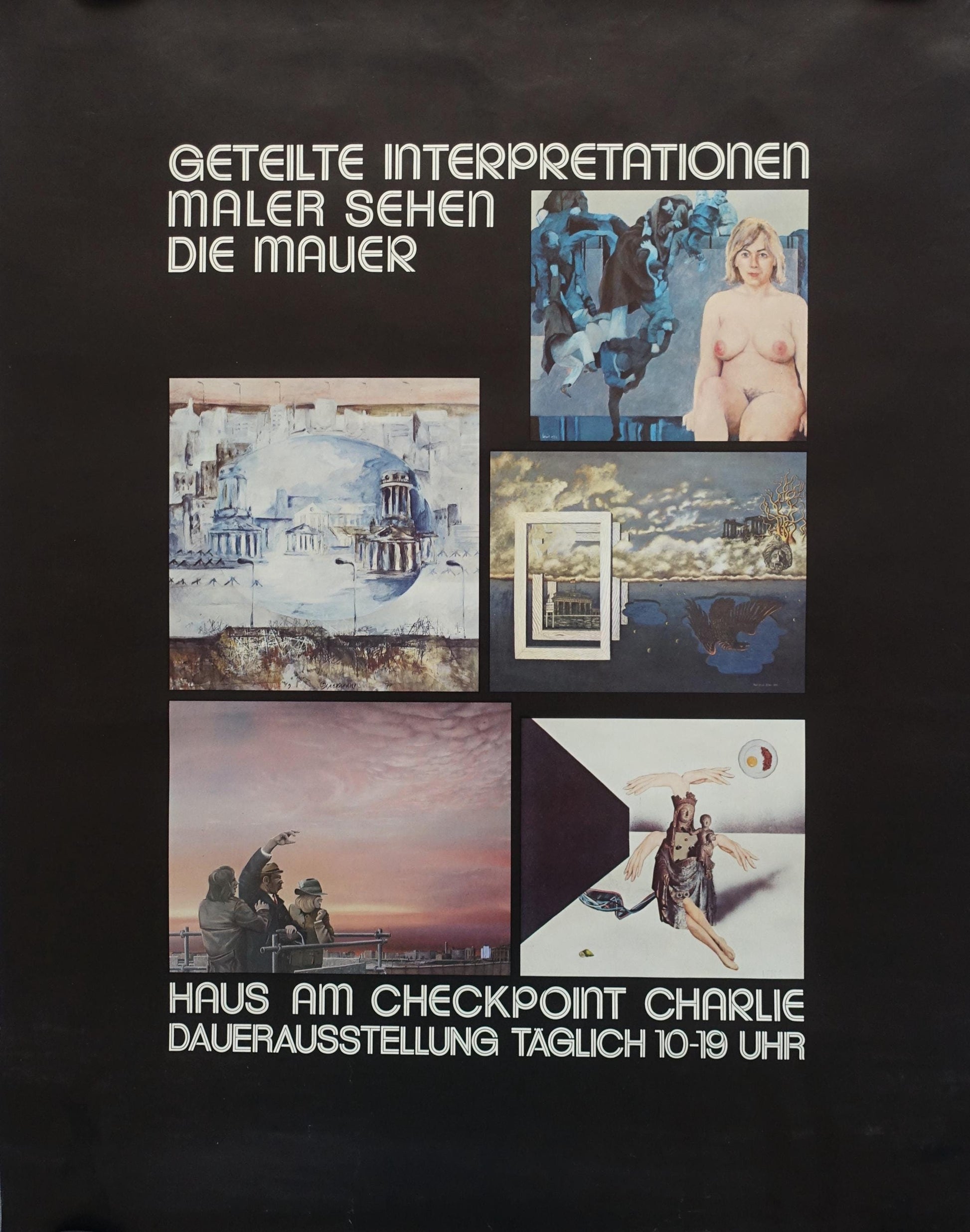 The exhibition was called: "Geteilte Interpretationen Maler sehen die Mauer". The image on the poster was also used as cover for a book with the same theme.