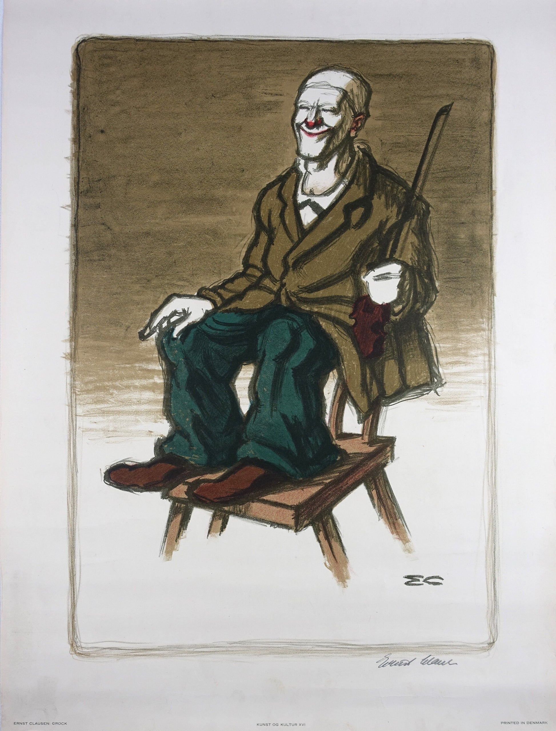 A really nice portrait of Grock the clown made by the Danish artist Ernst Clausen.