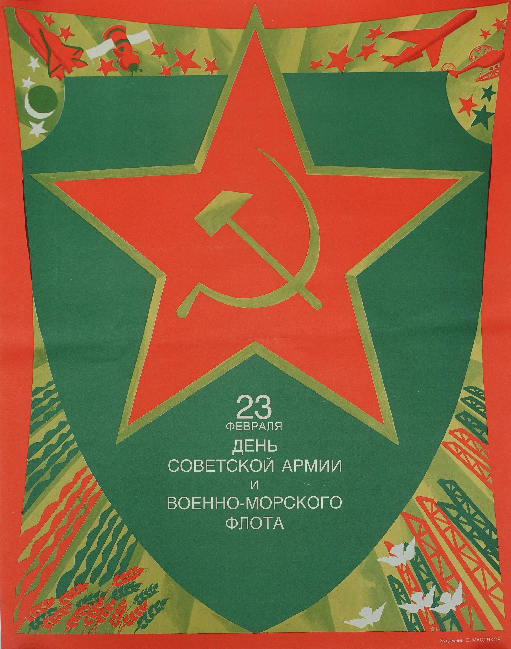 The poster announces the "Soviet Army and Navy Day" celebrated on 23 February. Today the day is still a public holiday and is known as "Defender of the Fatherland Day".