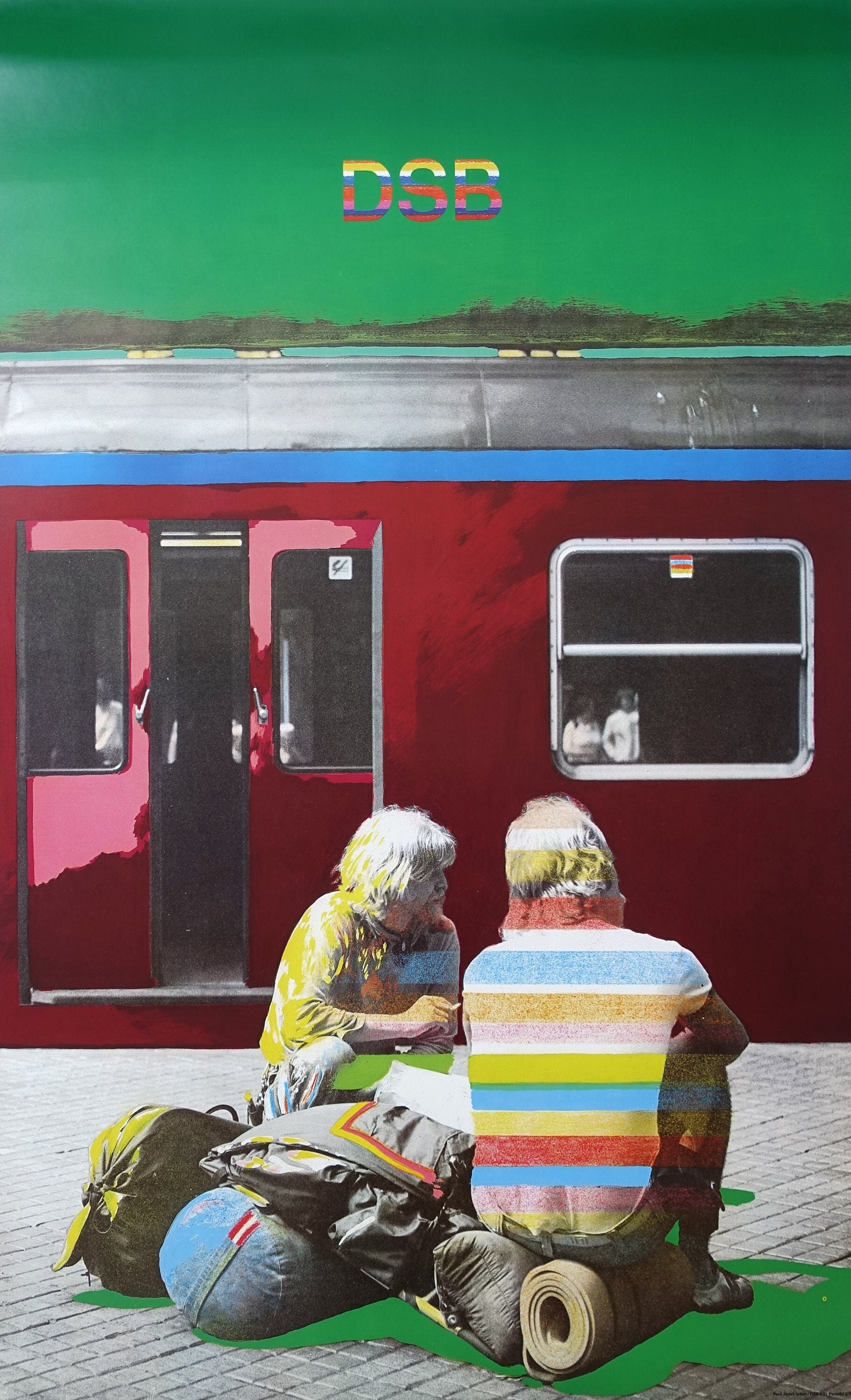All the photos for the series of six posters was taking on Copenhagen Central Station or in trains. And after the photographer selected the best pictures he added a lot of powerful colors - this was the 1980s indeed!