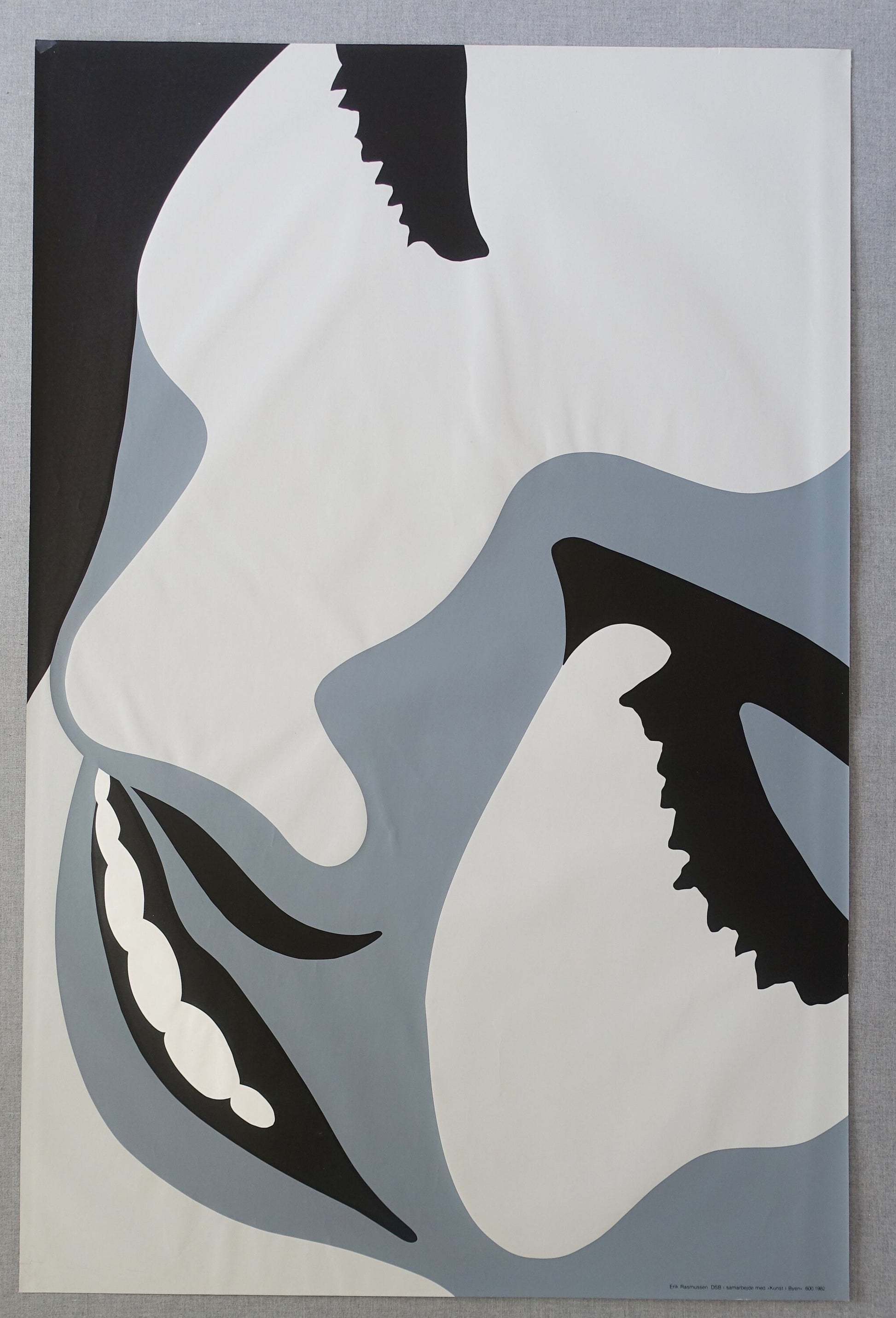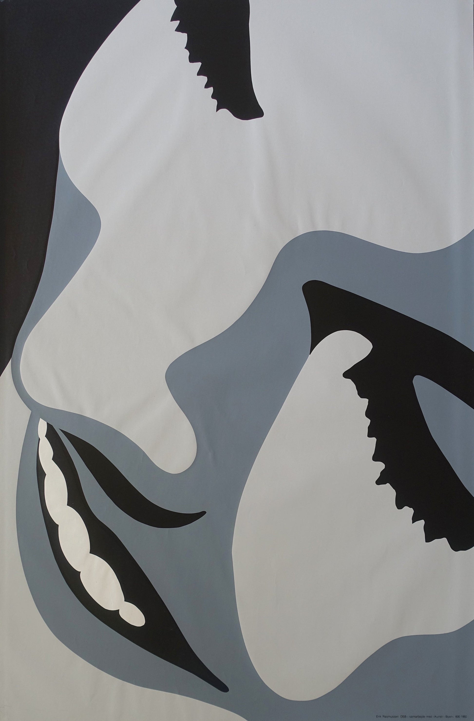 Very stylish Danish pop art lithography displaying a close-up of a smiling lady.