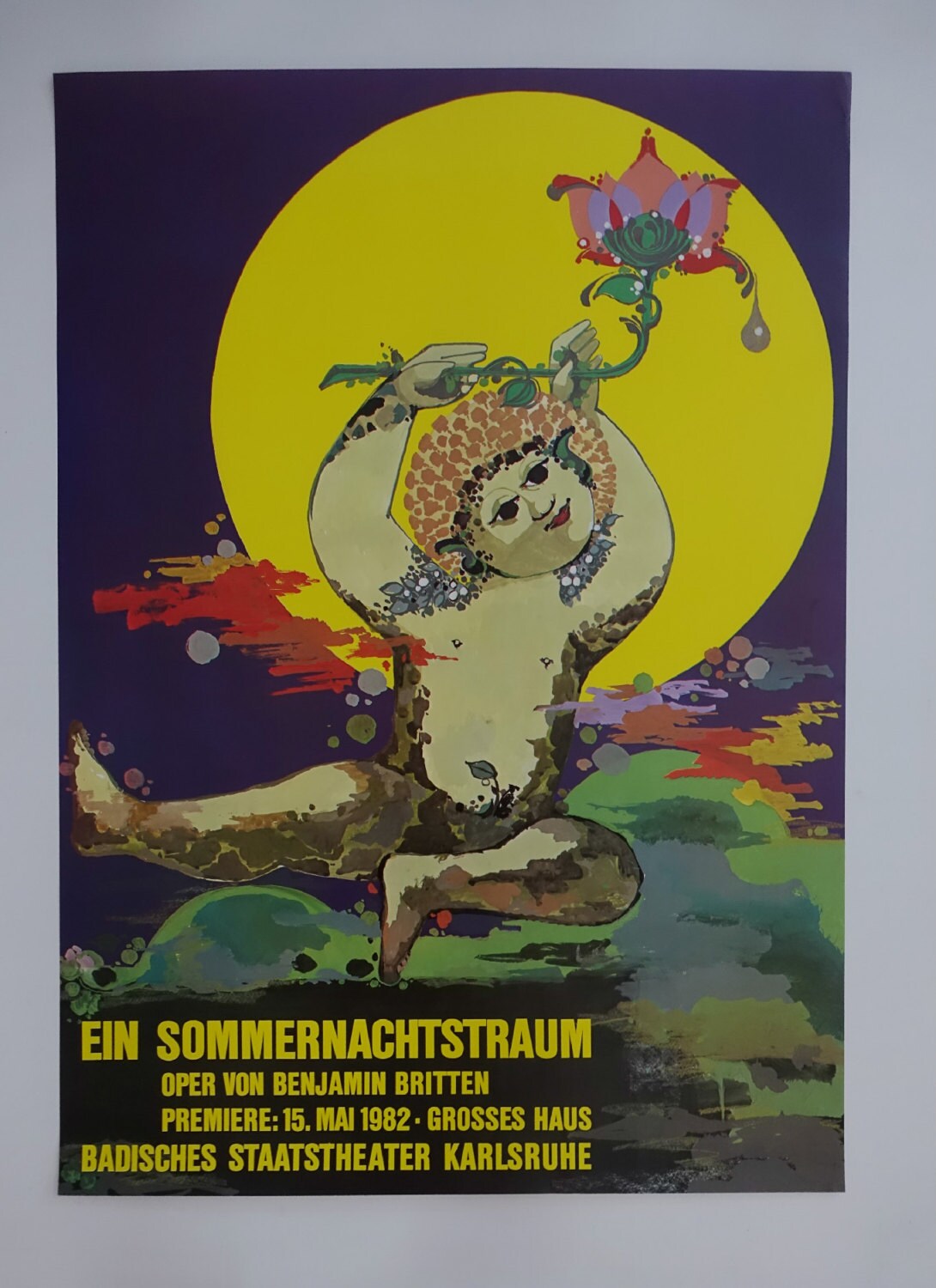 The Danish artist Bjørn Wiinblad made this poster for a theater production of “A Midsummer Night’s Dream” in Karlsruhe, Germany in 1982 and Wiinblad designed not only the stage decor but also the costumes.