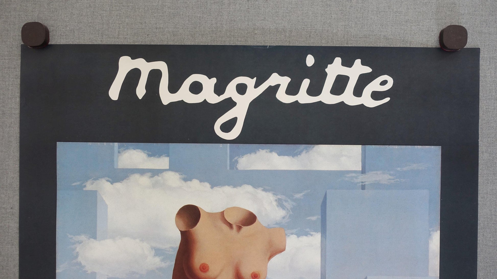 A quite interesting surreal poster advertising an exhibition with works by René Magritte.
