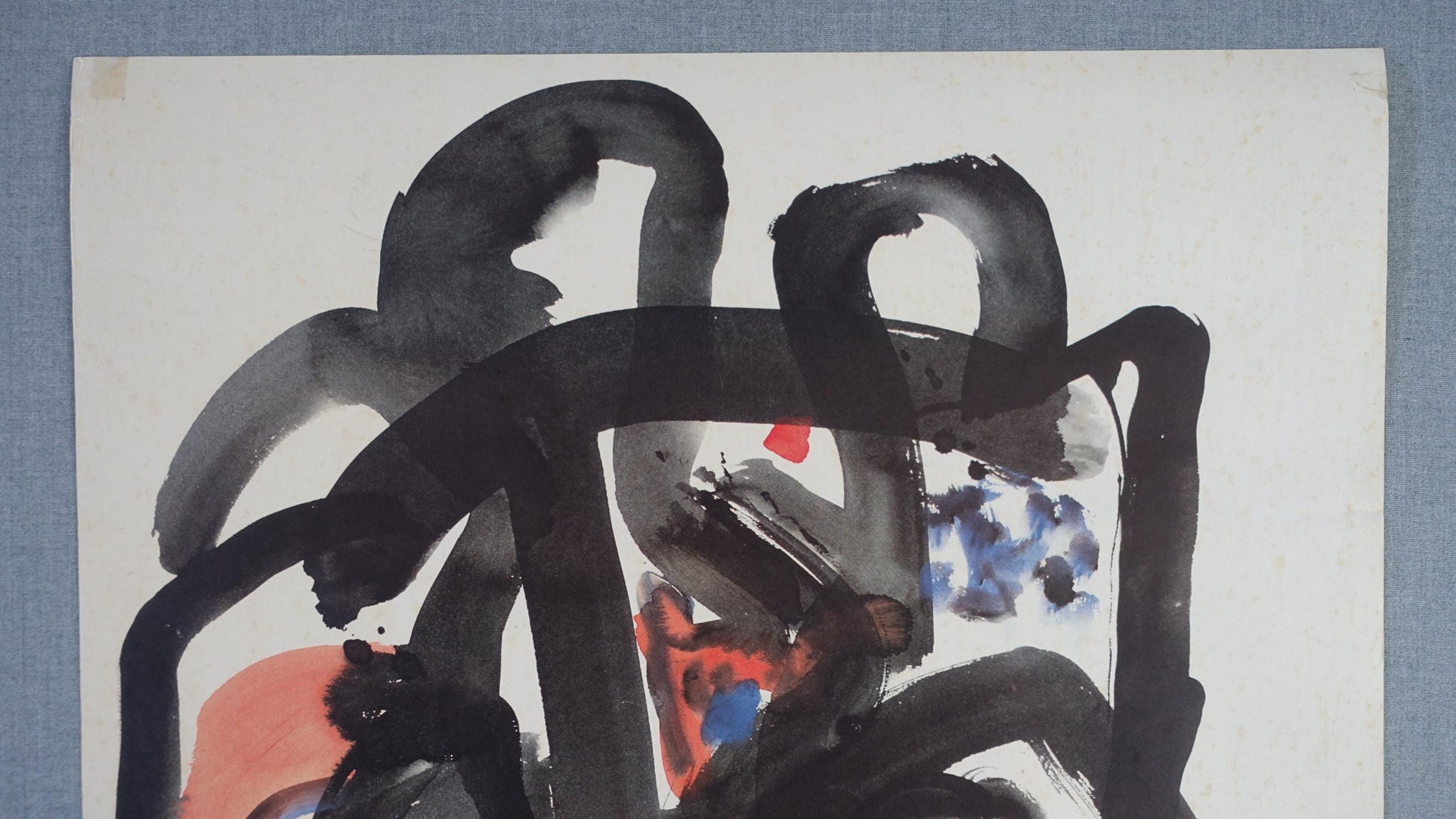 Andersen was born in Copenhagen and studied painting in the 1930s. His early works were earthy-colored figure paintings but he was more interested in French Modernism. After the Second World War, he spent lengthy periods in Paris until 1965, where he was attracted by Abstract art. Thanks to his friendship with Pierre Soulages and Jean Bazaine, he developed a style of dark arabesques on a light background.