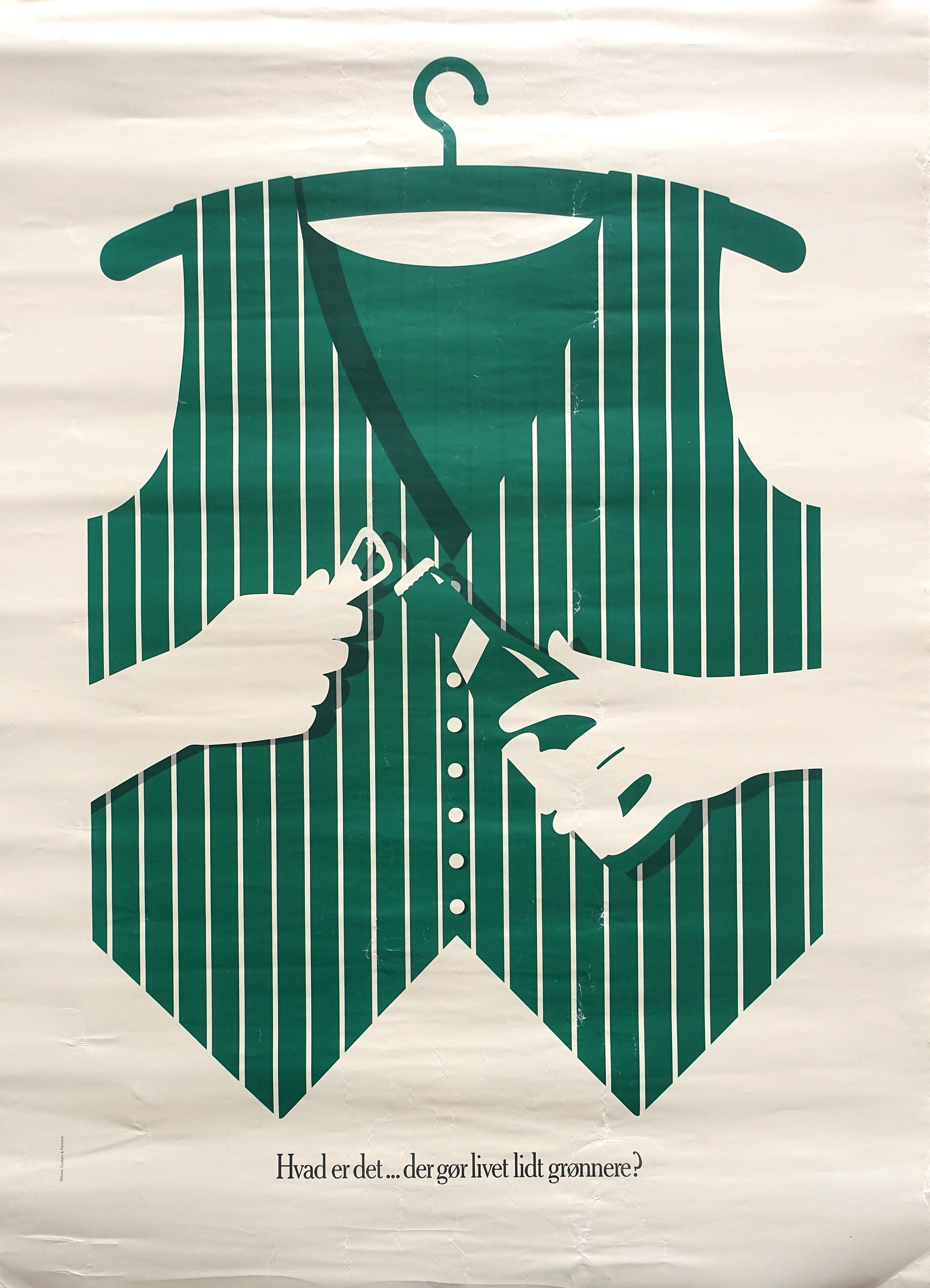 The poster displays a the uniform of a traditional bartender in a Danish bar (bodega). In front of the bartender a Tuborg beer is being opened but you have to know a bit about Tuborg to understand that this is actually a Tuborg Beer advertisement.