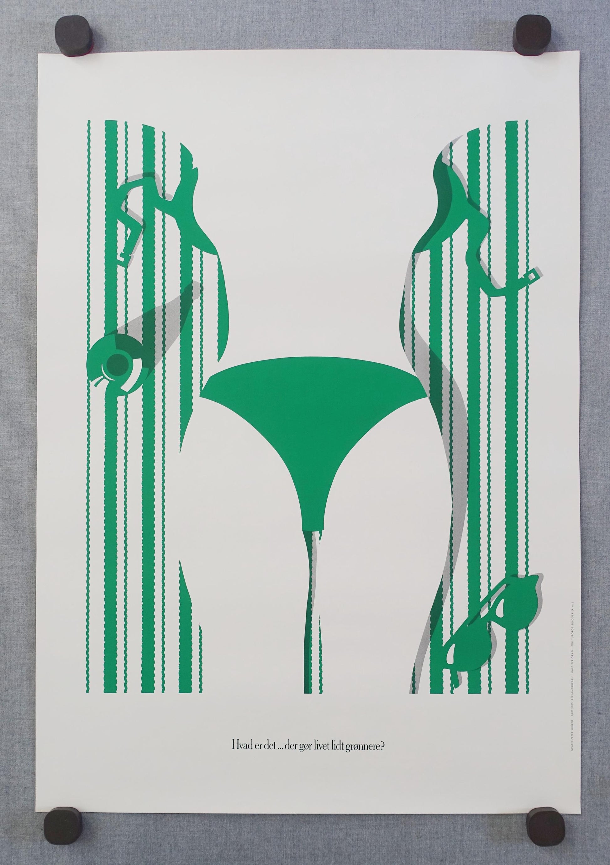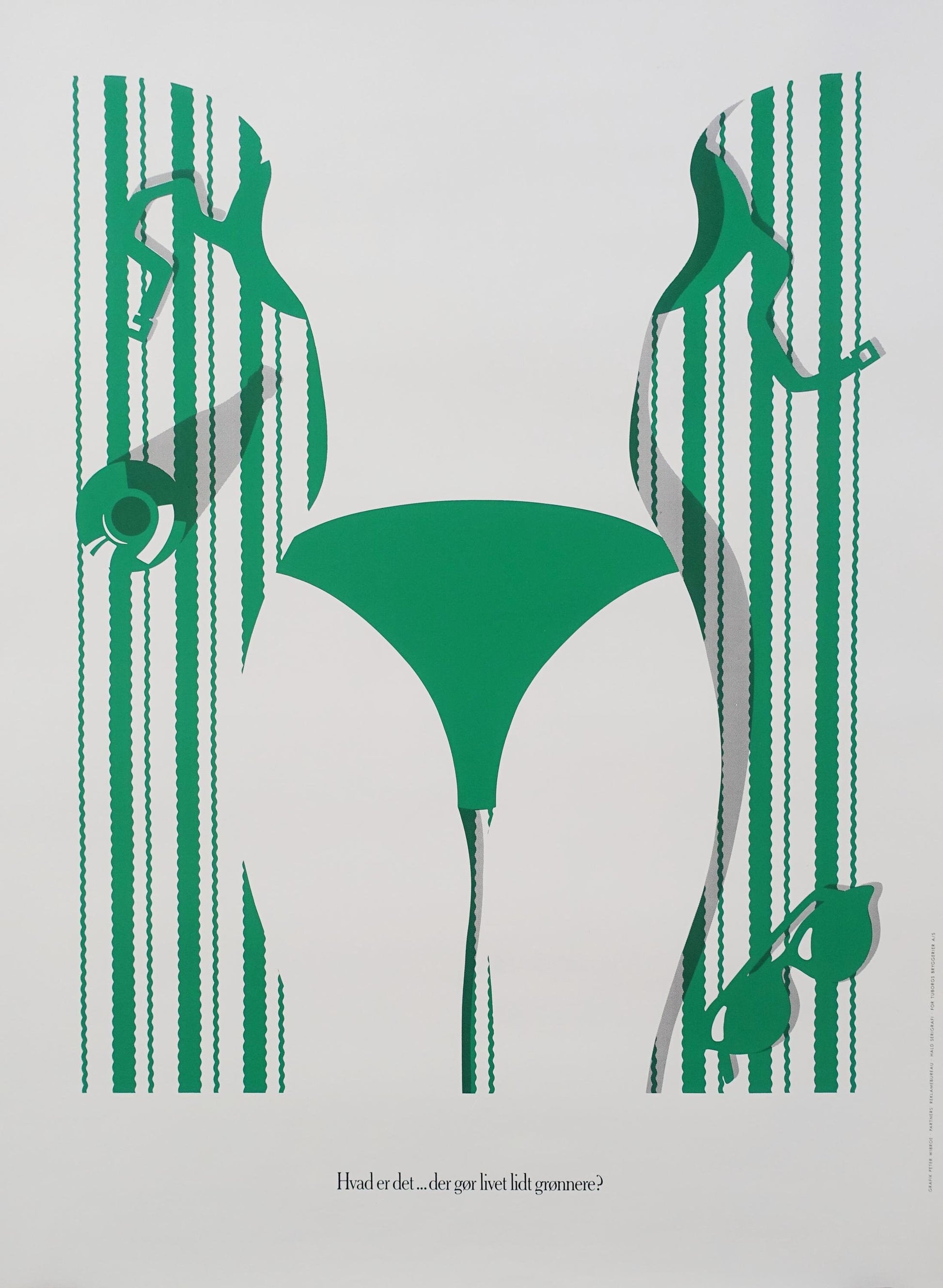 How do we know what kind of beer it is? Tuborg beer had and has been for a long time been advertised as being "the green beer" and the silhouette of the beer on the poster leaves no connoisseurs in doubt.
