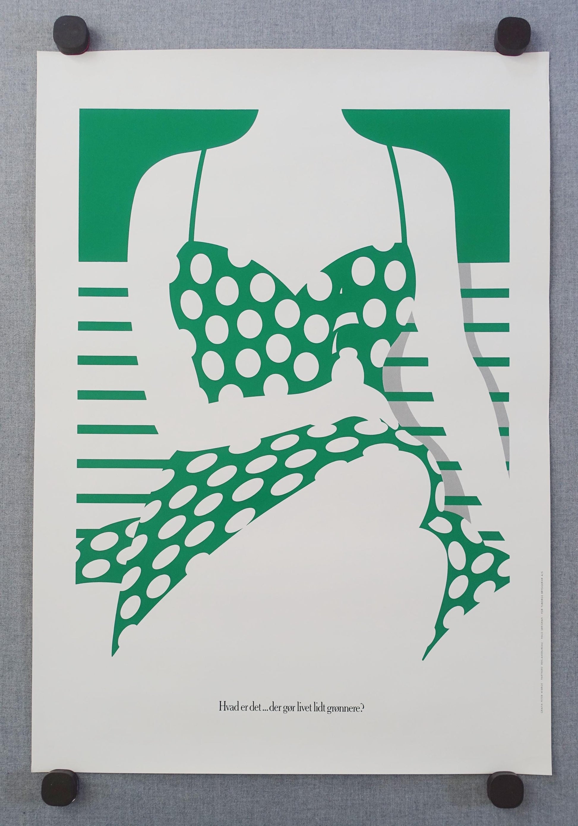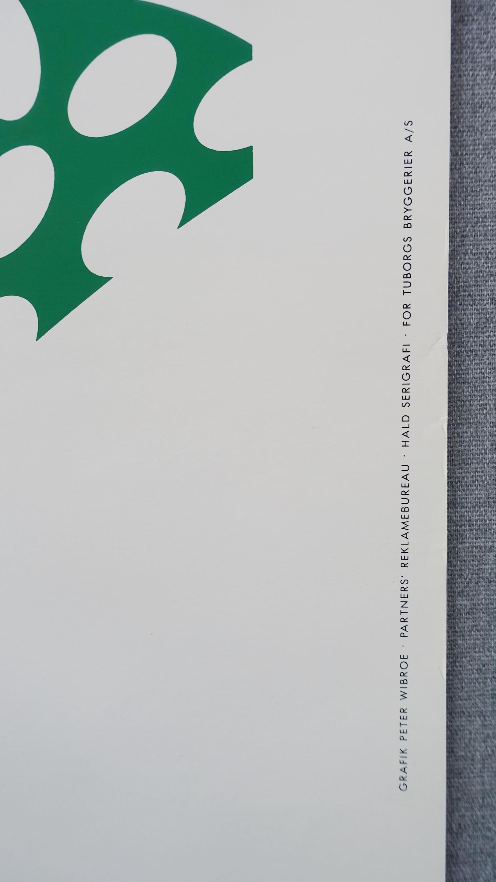 How do we know what kind of beer it is? Tuborg beer had and has been for a long time been advertised as being "the green beer" and the silhouette of the beer on the poster leaves no connoisseurs in doubt.