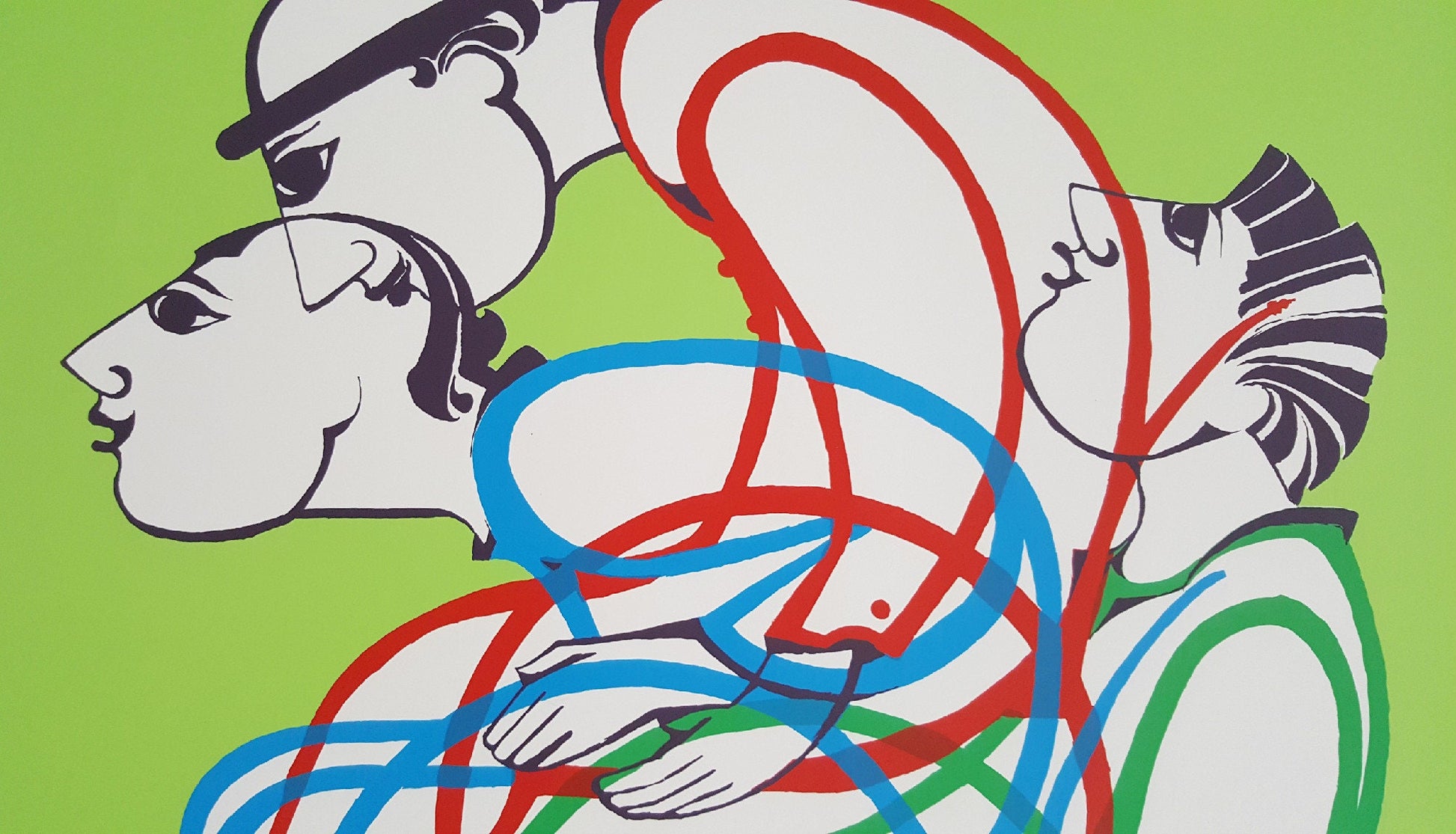 Wiinblad wrote on this poster: "Olympics for the disabled" but today we know the games "Paralympic Games" and the graphical design is made of three racing athletes in wheelchairs.
