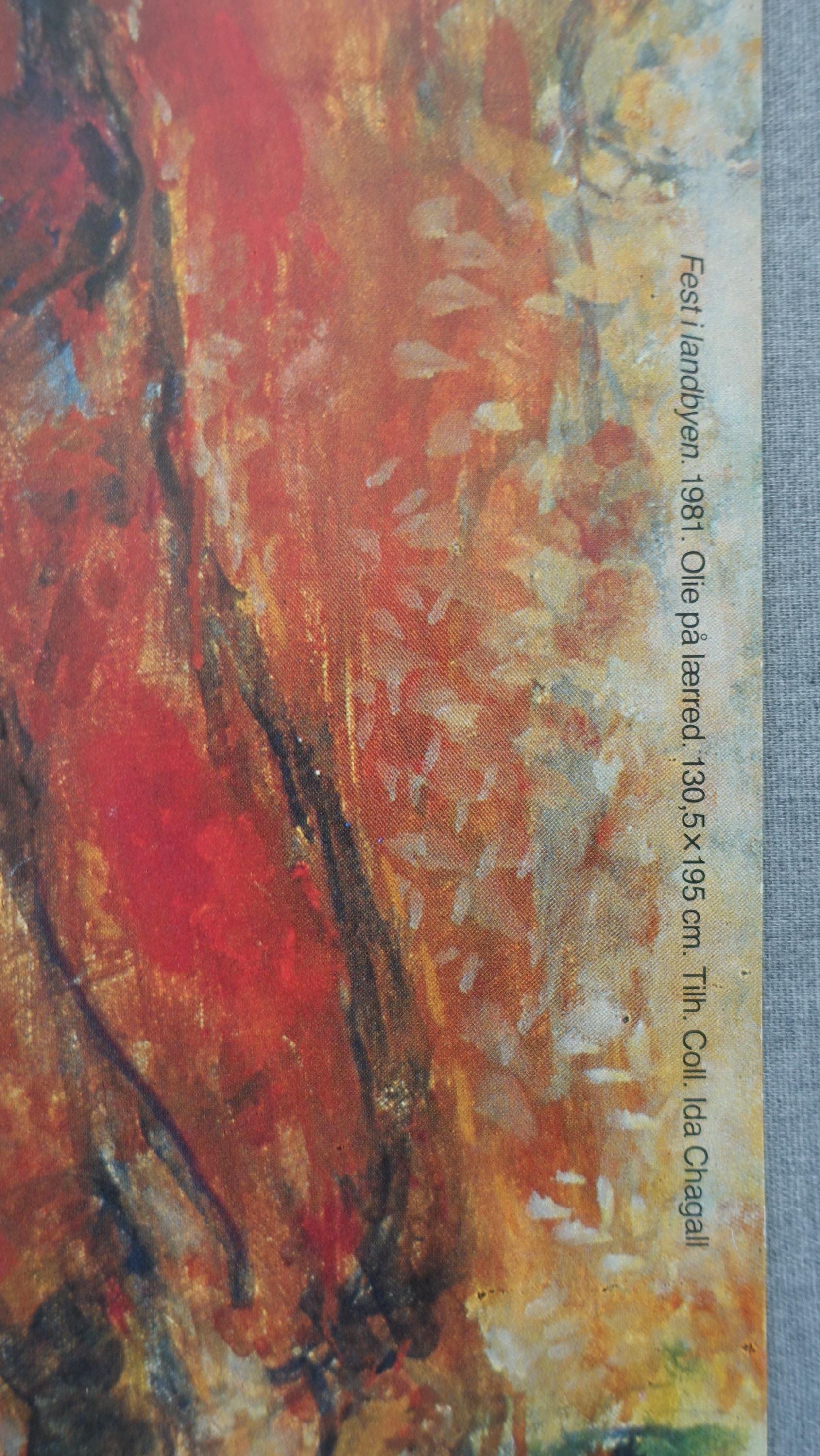 The art on the poster is called "Celebration in the village" and was painted in 1981.
