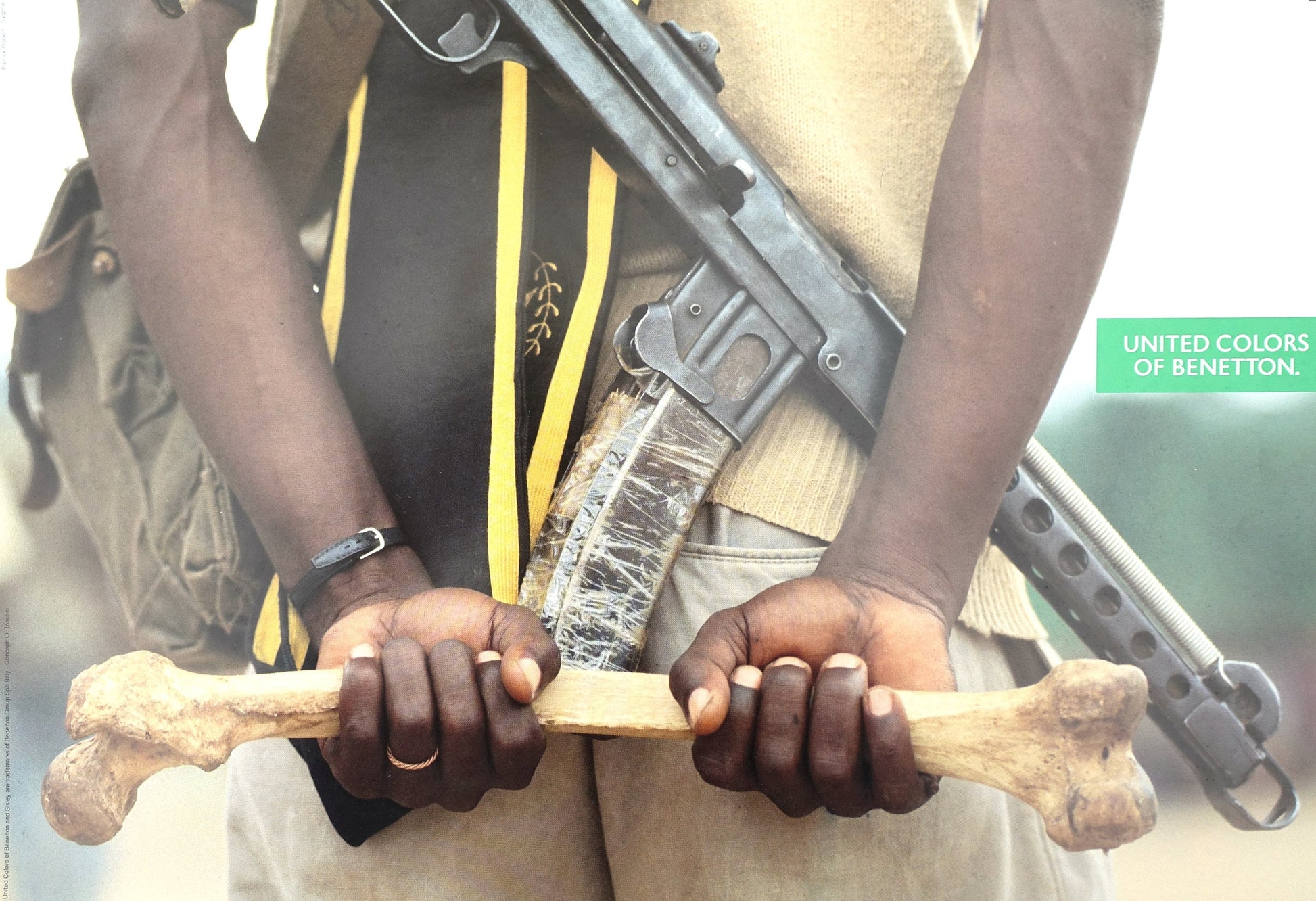 1992 Benetton Advertisement "Solider With The Bone" - Original Vintage Poster