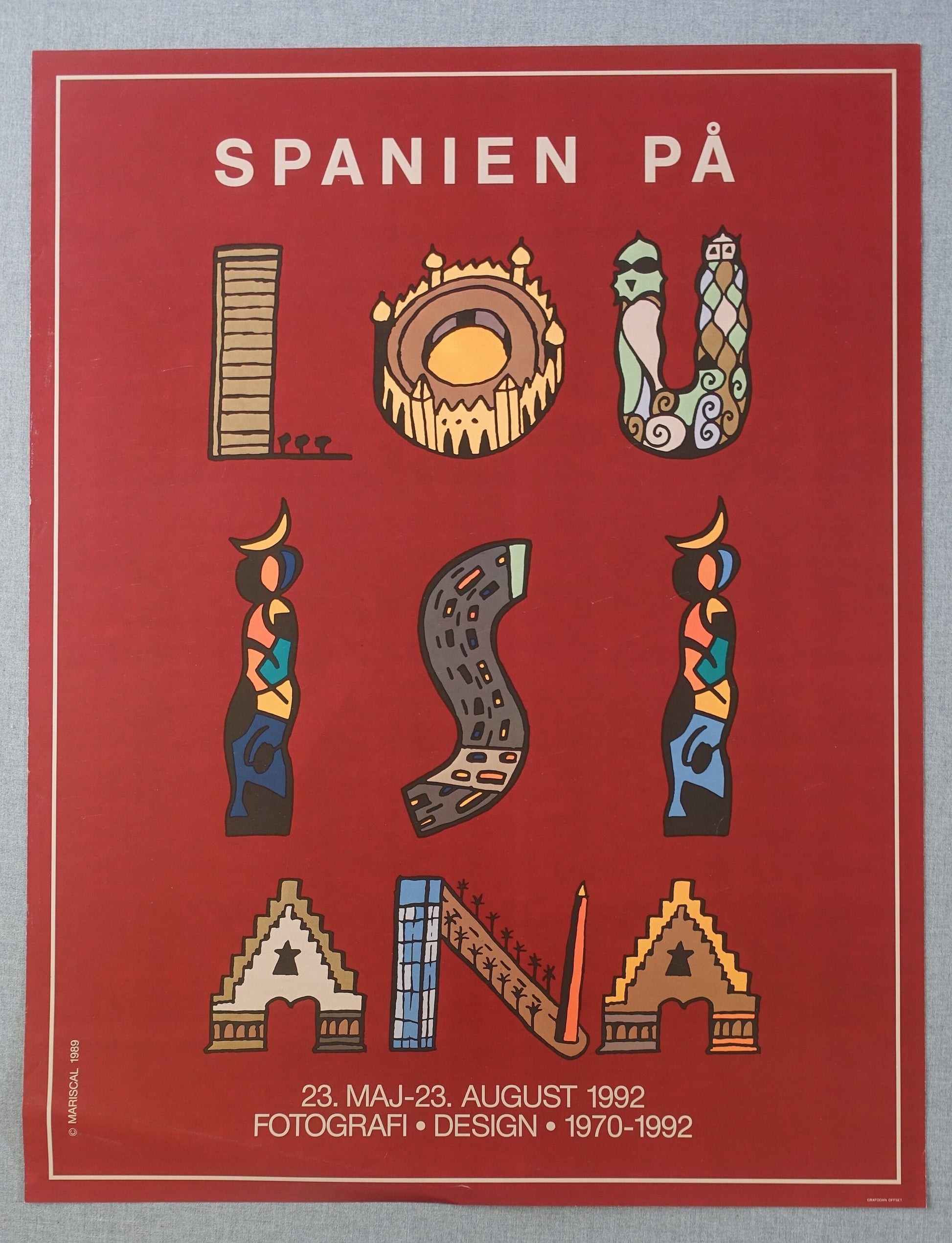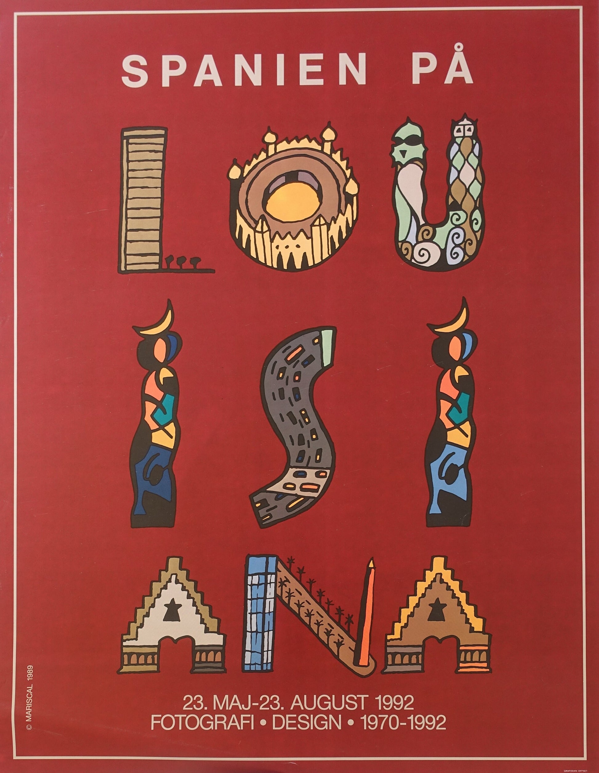 Stunning exhibition poster displaying famous Spanish landmarks in letters forming the name "Louisiana".