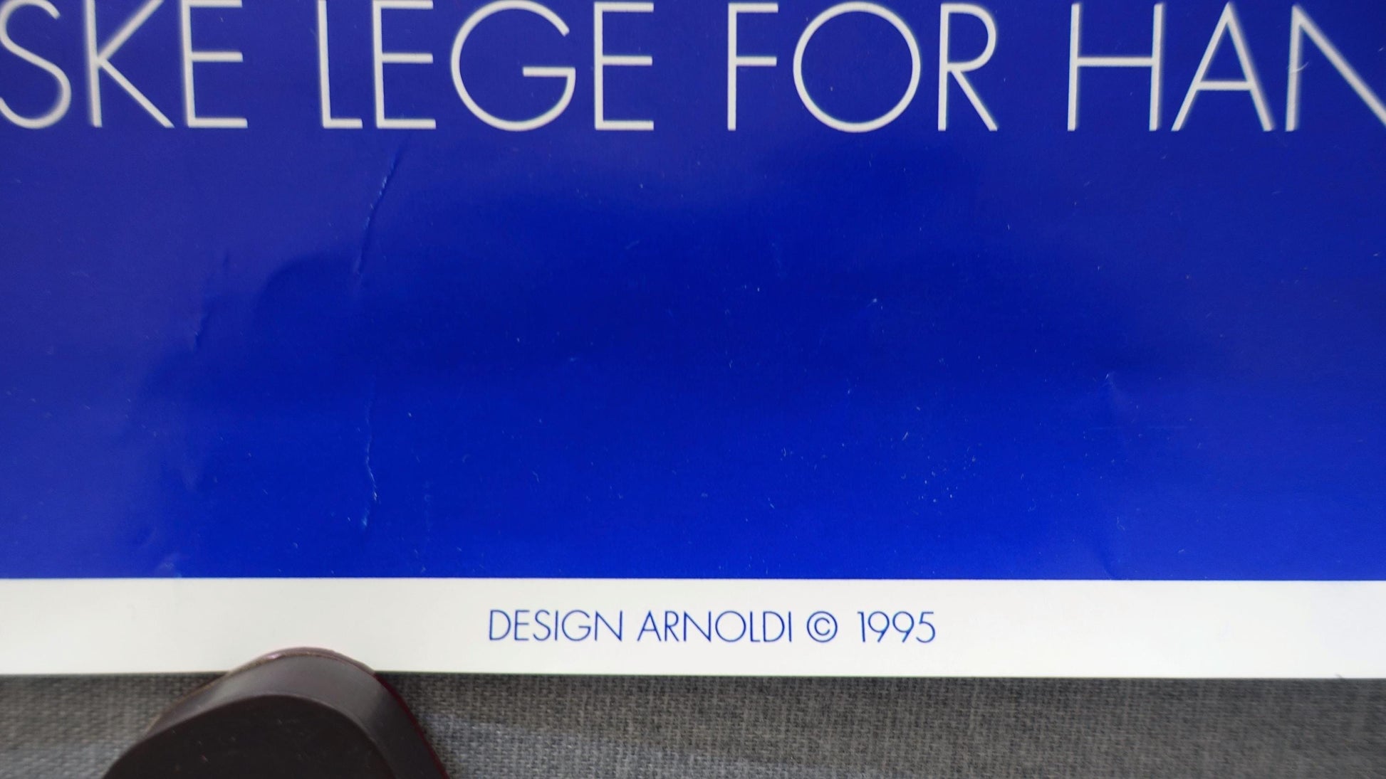 Per Arnoldi is a self-taught, world-renowned modernist artist. He is particularly known for his posters and considered one of Denmark's most important poster artists. He is known for a tight and easily recognizable form and color language. As a painter, Per Arnoldi always uses primary colors (red/yellow/blue) on a bed of white - just like on this very poster.