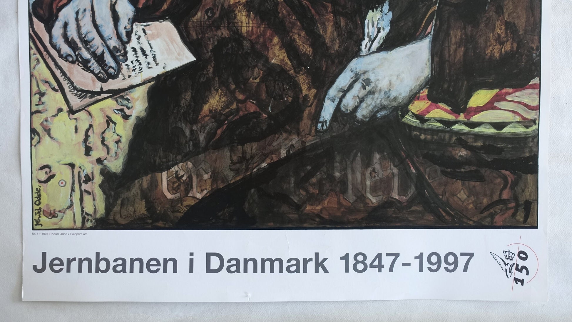 The poster is a part of a series of six which was made by the Danish artist Knud Odde (1955) to celebrate the 150th anniversary of Danish State Railways (DSB). This poster is number three of six in the collection.