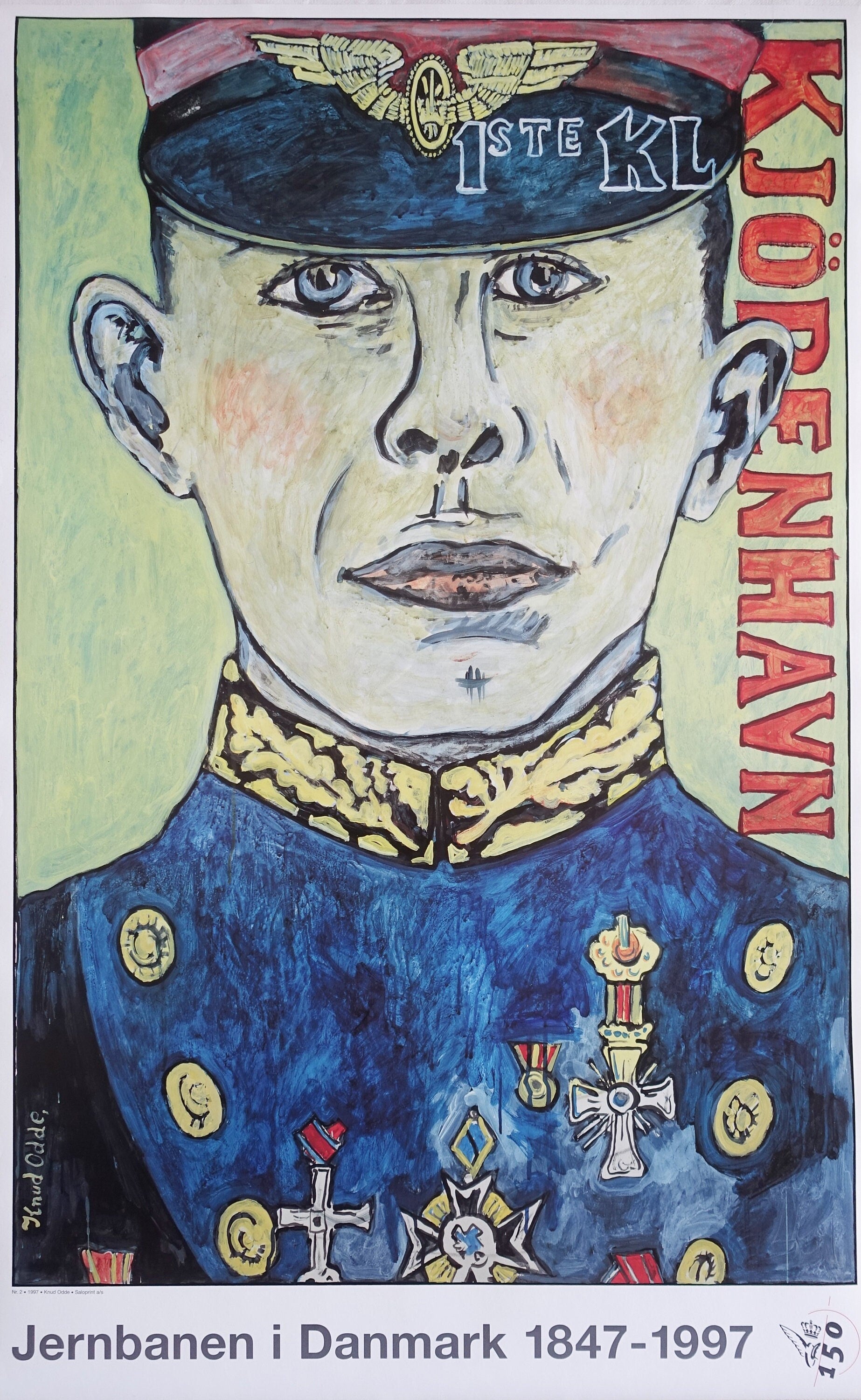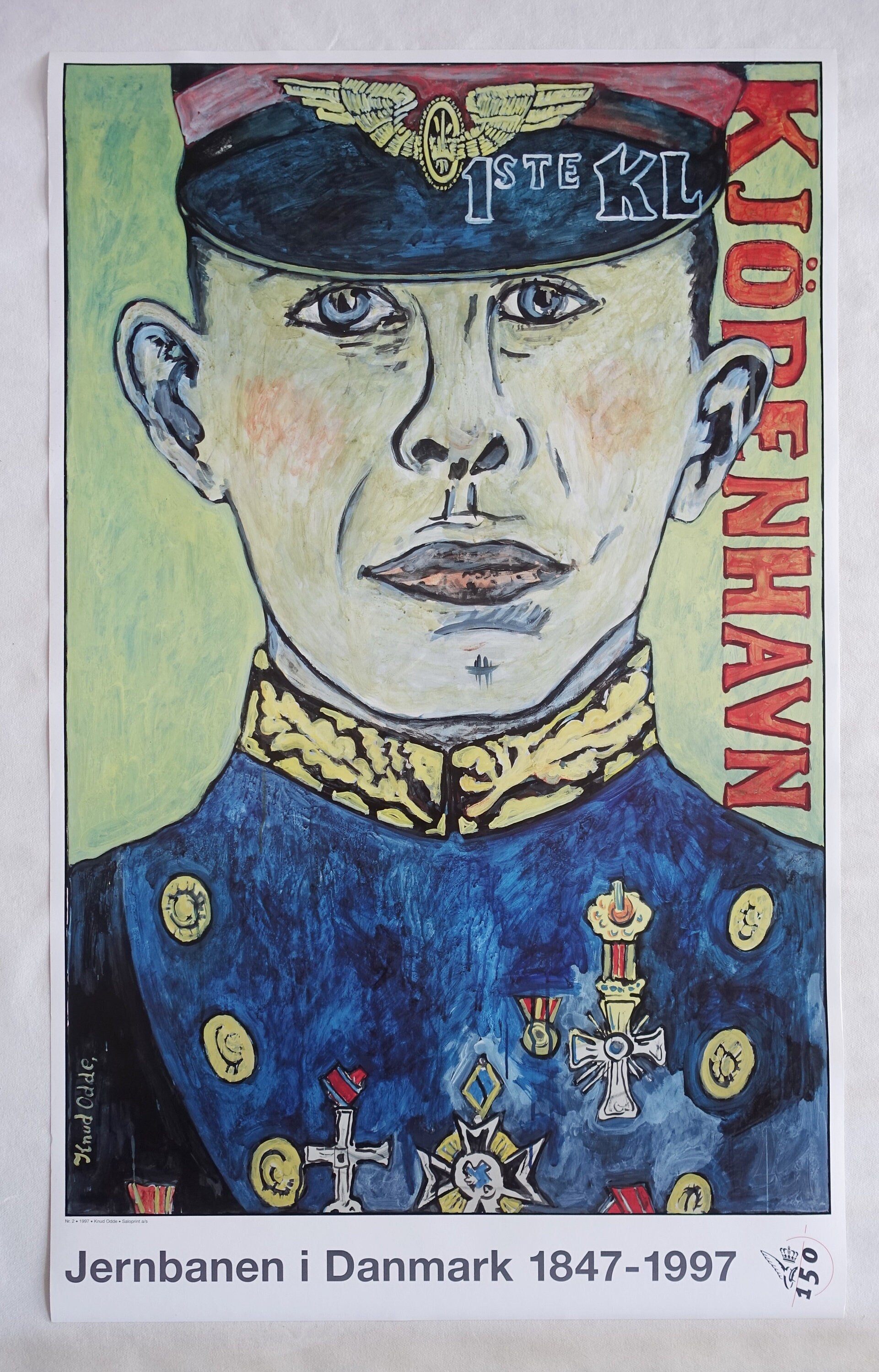 The great poster is a part of a series of six which was made by the Danish artist Knud Odde (1955) to celebrate the 150th anniversary of Danish State Railways (DSB). This poster is number three of six in the collection.