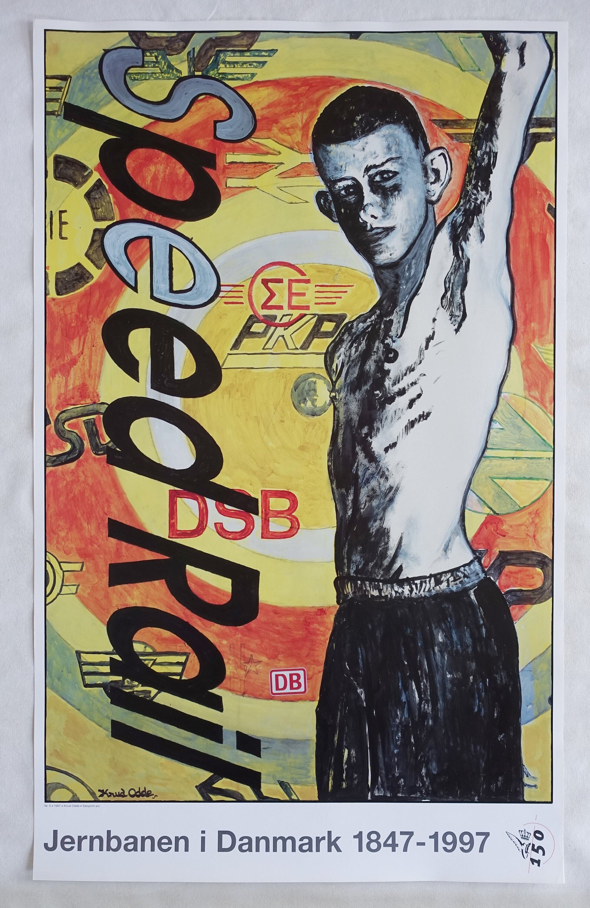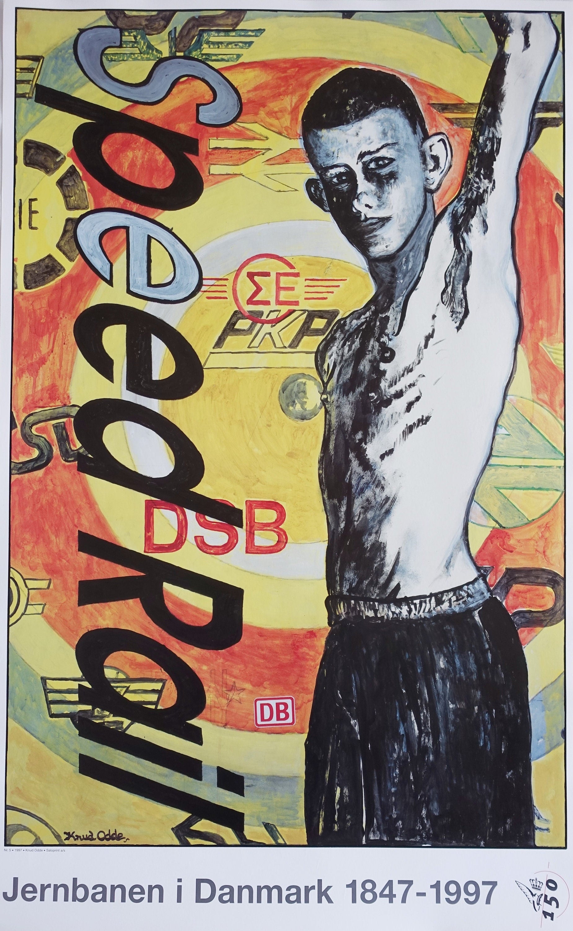 The poster is a part of a series of six which was made by the Danish artist Knud Odde (1955) to celebrate the 150th anniversary of Danish State Railways (DSB). This poster is number three of six in the collection.