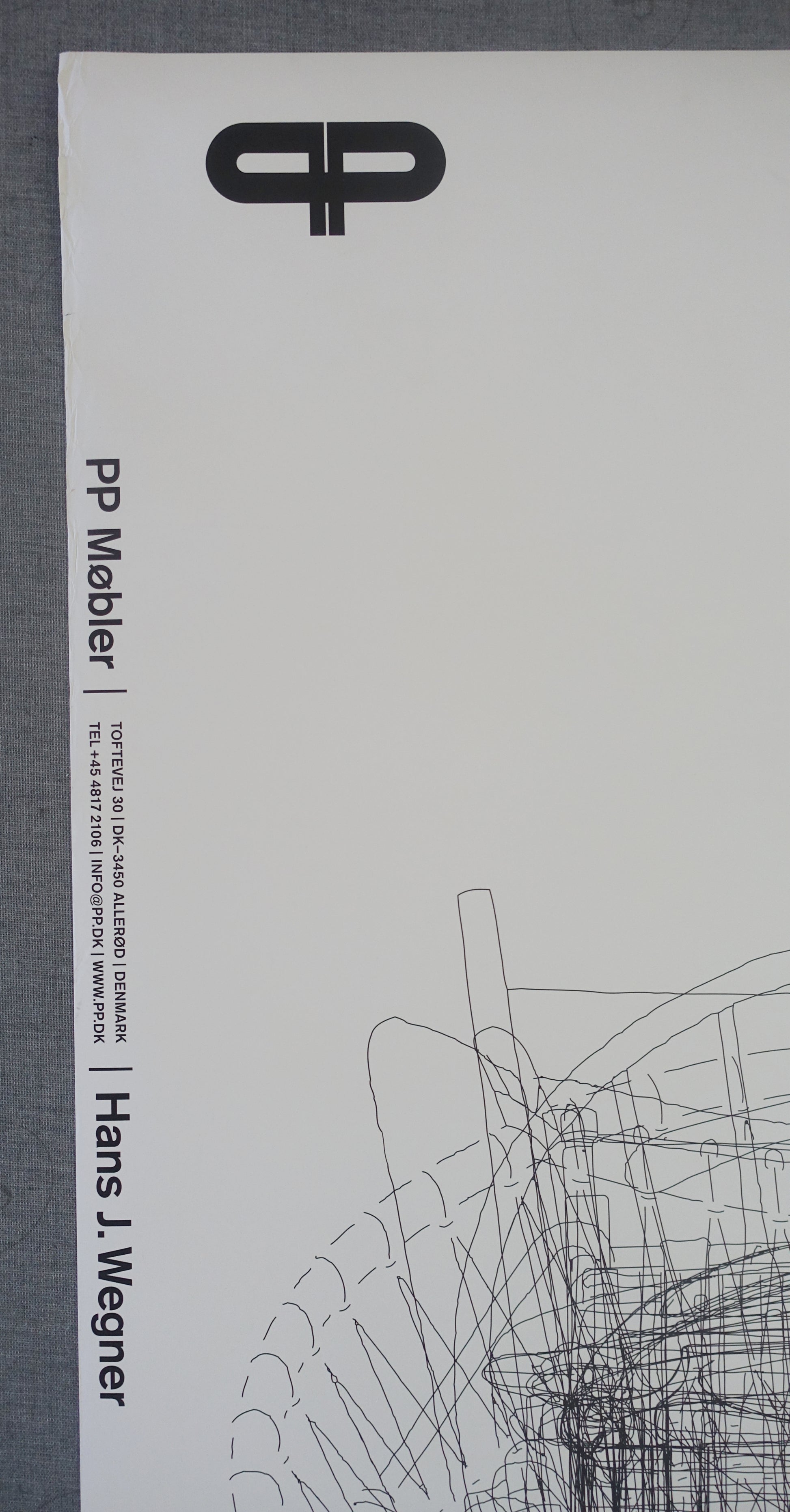 This vintage PP Møbler poster features an overlay of Hans J. Wegner’s original chair drawings – a striking black line composition on white, printed on heavy art paper.