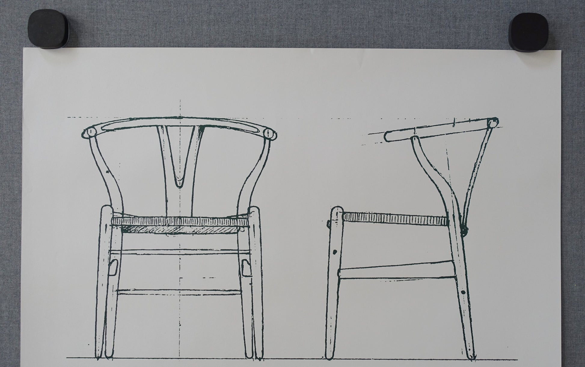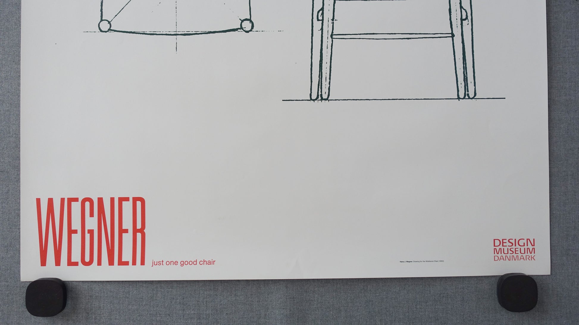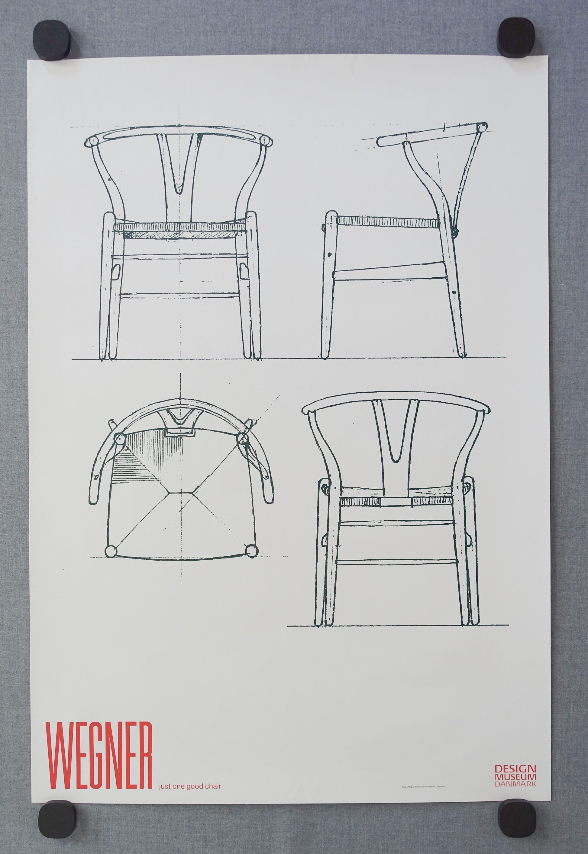 A newer but rare poster displaying a sketch for the elegant "Wishbone Chair" designed by the Danish architect and furniture designer, Hans J. Wegner (1914-2007).