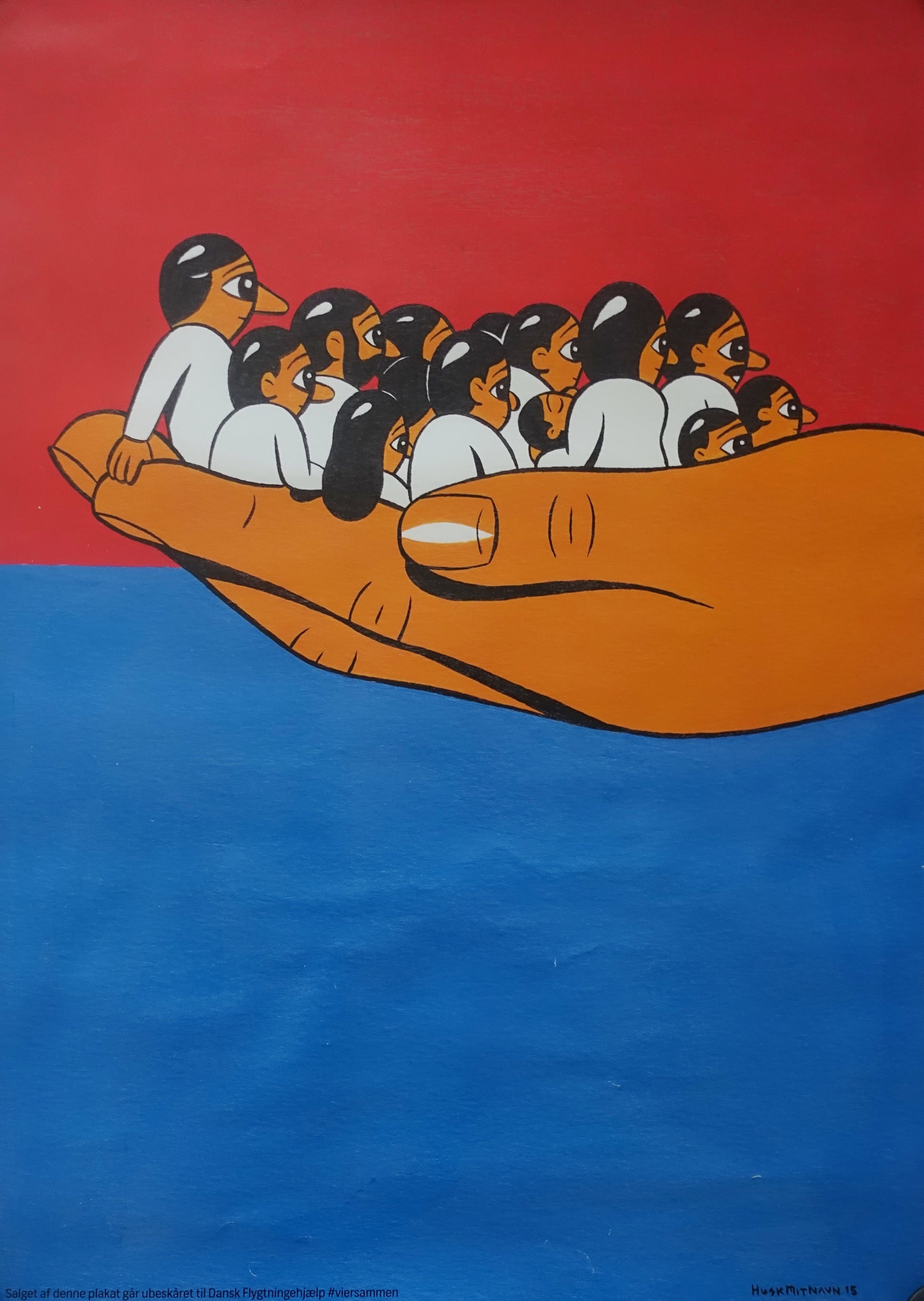 Originally sold to raise funds for Dansk Flygtningehjælp (Danish Refugee Council), it’s both graphic art and humanitarian statement.